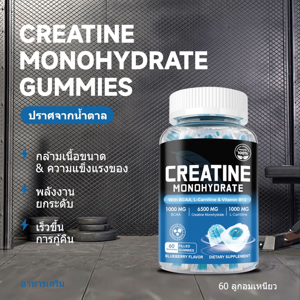 ISNIH Creatine Monohydrate Gummies ครีเอทีนโมโนไฮเดรต กัมมี่ ช่วยให้กล้ามเนื้อฟื้นตัวและบรรเทาอาการปวด รสบลูเบอร์รี่