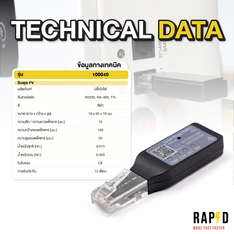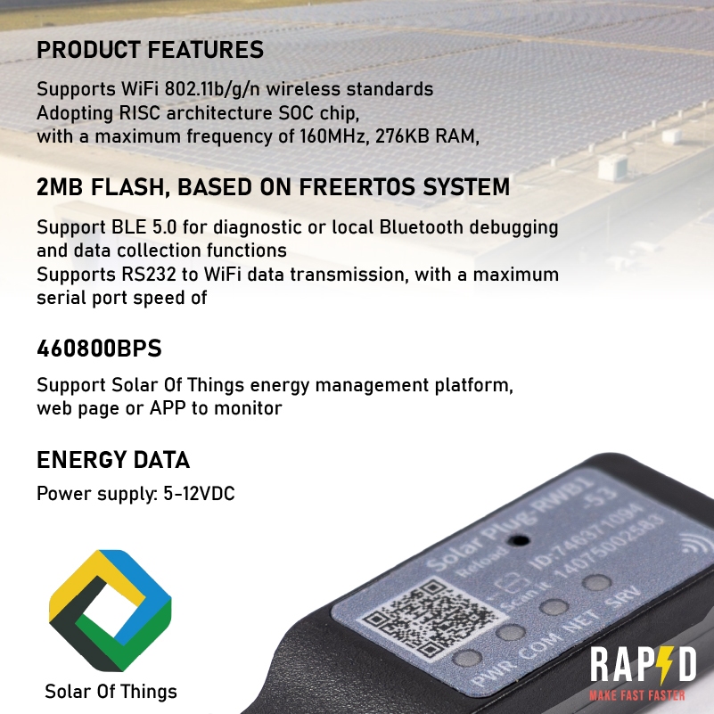 RAPD อุปกรณ์เชื่อมต่อ WiFi สำหรับอินเวอร์เตอร์ | Solar Plug RWB1 (Model 100040)