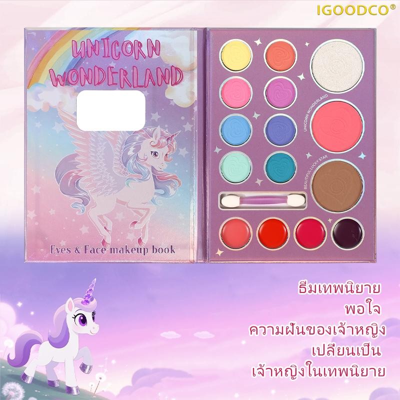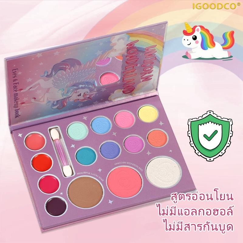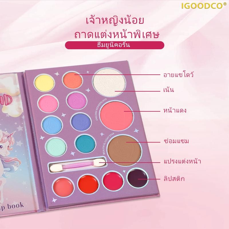 ไอGOODCO (IG3241 ) เด็กใหม่แบบพกพาแป้งสีฟ้าบลัชออนอายแชโดว์ลิปสติกสีพาเลท (3-16 ปี)