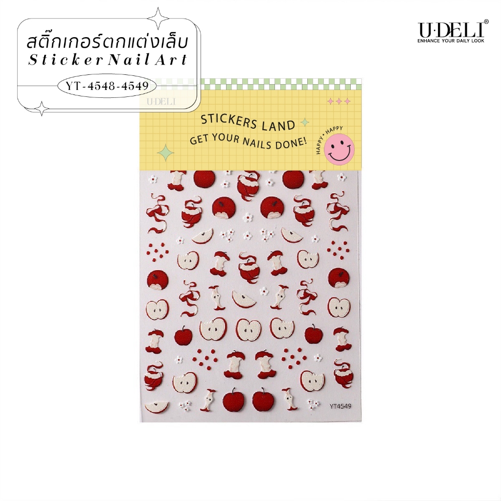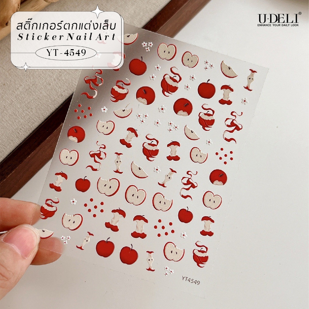 U-DELI สติกเกอร์ติดเล็บ ดีไซน์น่ารัก ผลไม้ Apple สไตล์เกาหลี ไม่ต้องลอกน้ำ ติดได้เลย Stickers Land