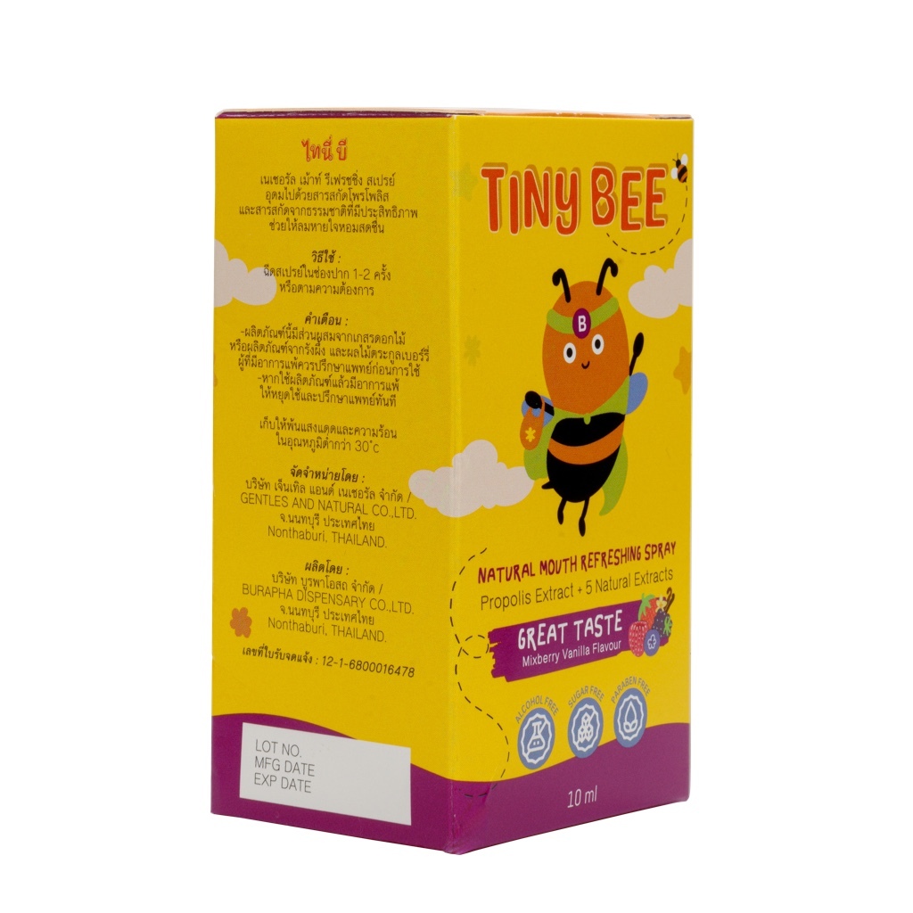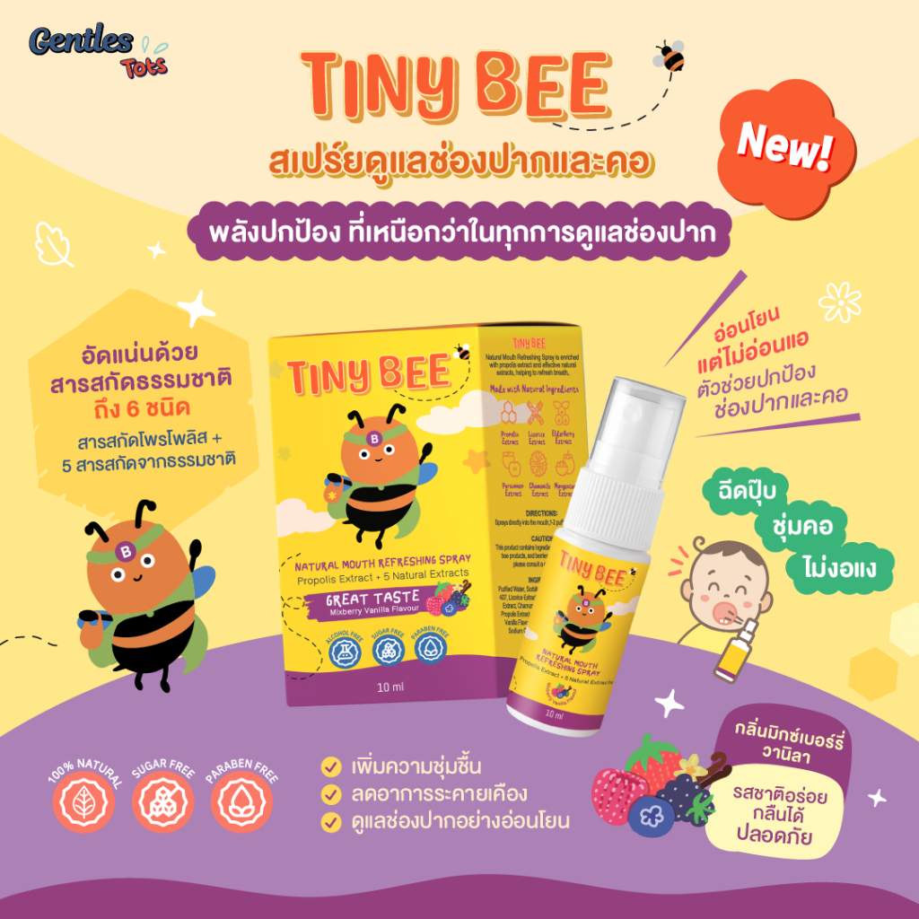 Gentles Tots - Tiny Bee Natural Mouth Refreshing Spray กลิ่นมิกซ์เบอร์รี่ วานิลลา ขนาด 10ML. สำหรับน้องอายุ1ปีขึ้่นไป+