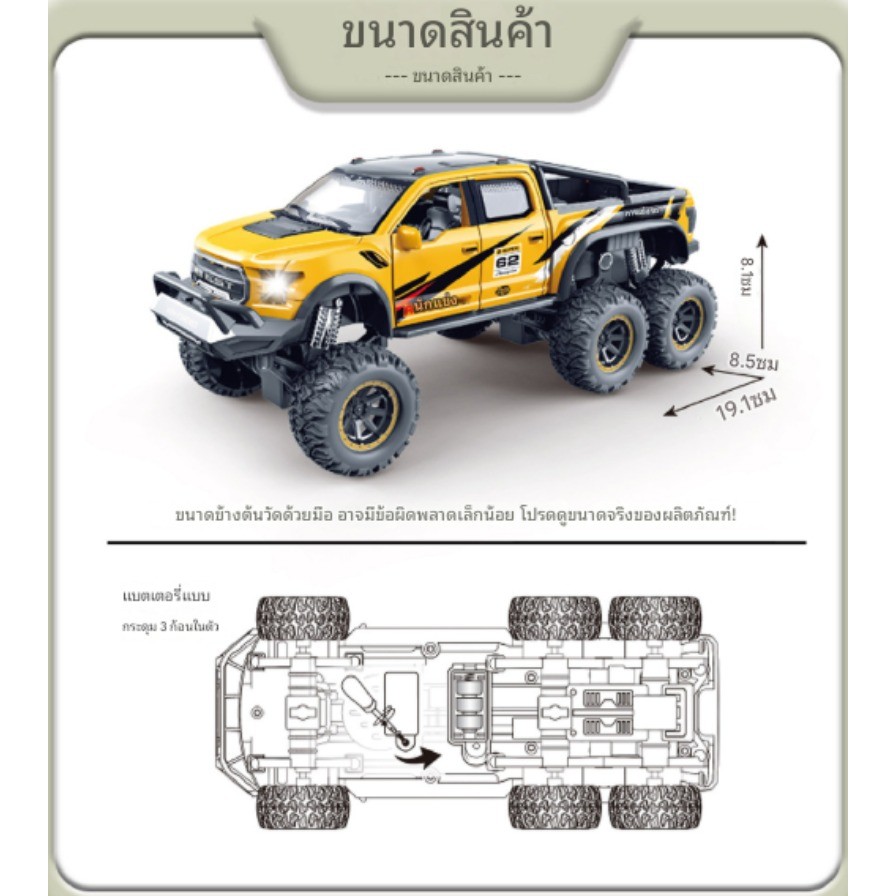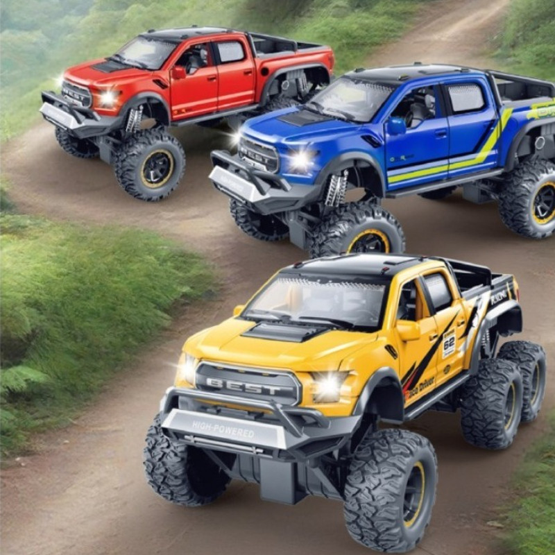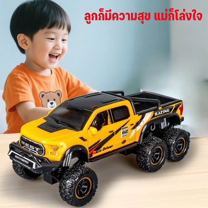 รถของเล่นเด็ก 3-6 ปี จำลองเสียงและแสงรถกระบะออฟโรด รถหกล้อดูดซับแรงกระแทก รุ่นรถเฉื่อย