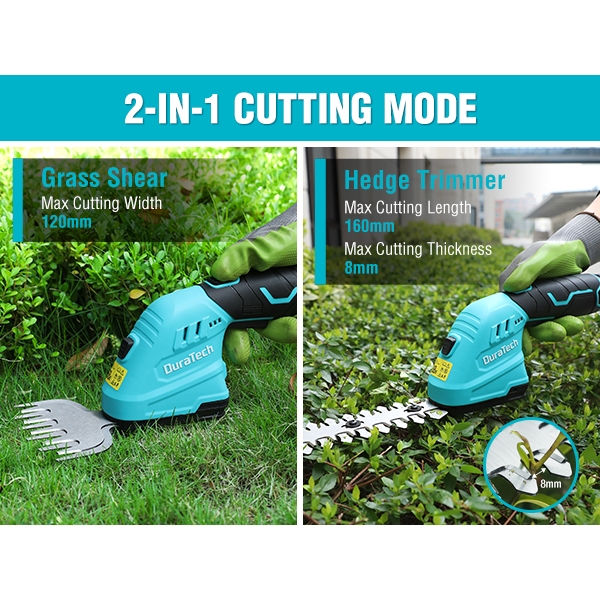 DURATECH 12V 2 in 1 Hedge Trimmer ไฟฟ้า Grass&Shrub Shear เครื่องตัดหญ้าไร้สายสําหรับสวน บ้าน