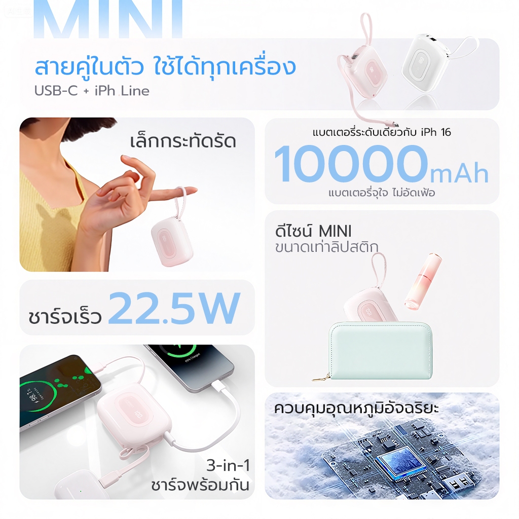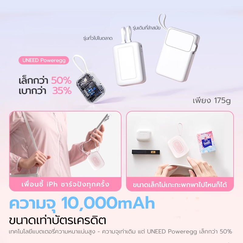 [China CCC]UNEED POWERBANK Mini 10000mAh Fast Charge PD22.5W พาวเวอร์แบงค์ พกพา เล็ก พาวเวอแบงค์ 2
