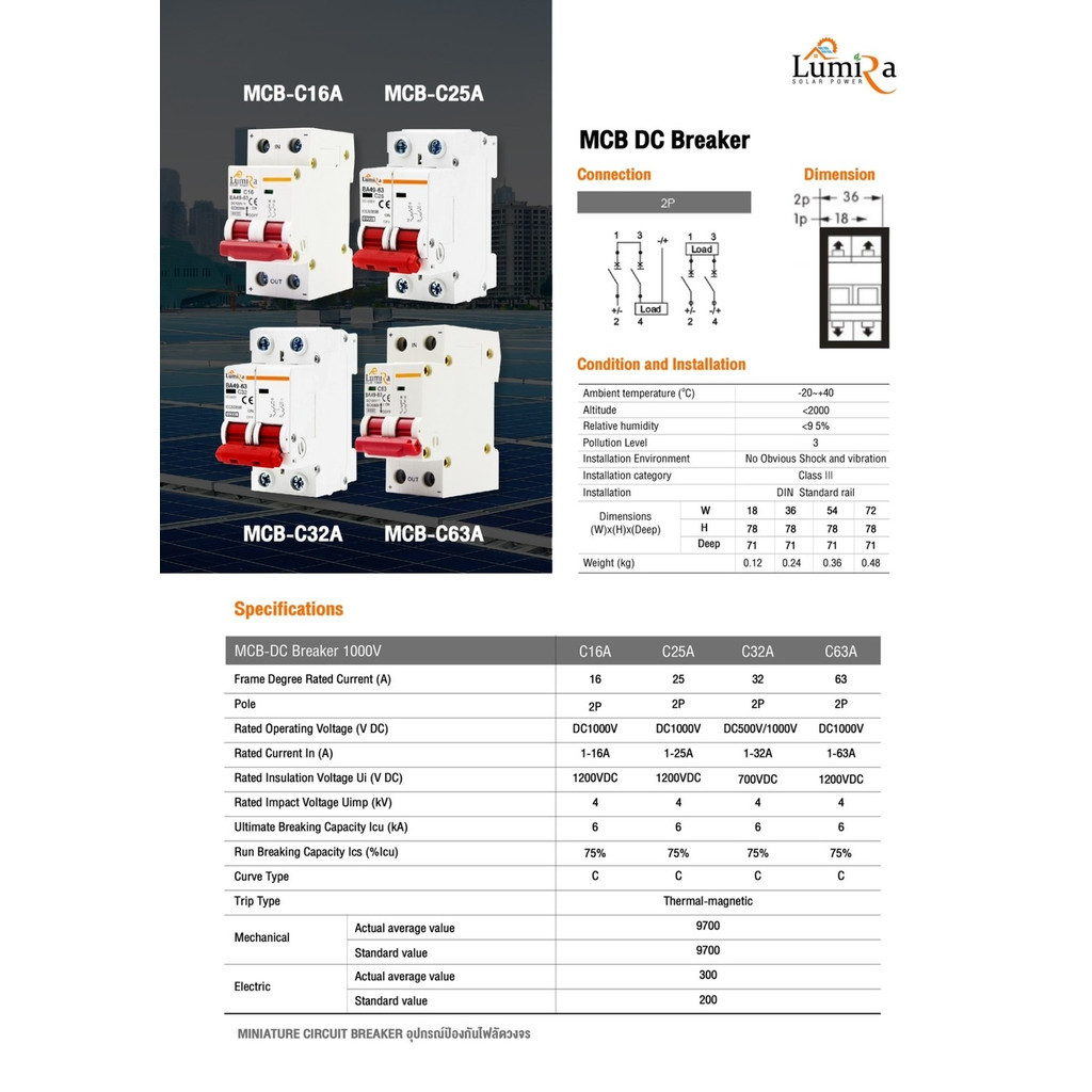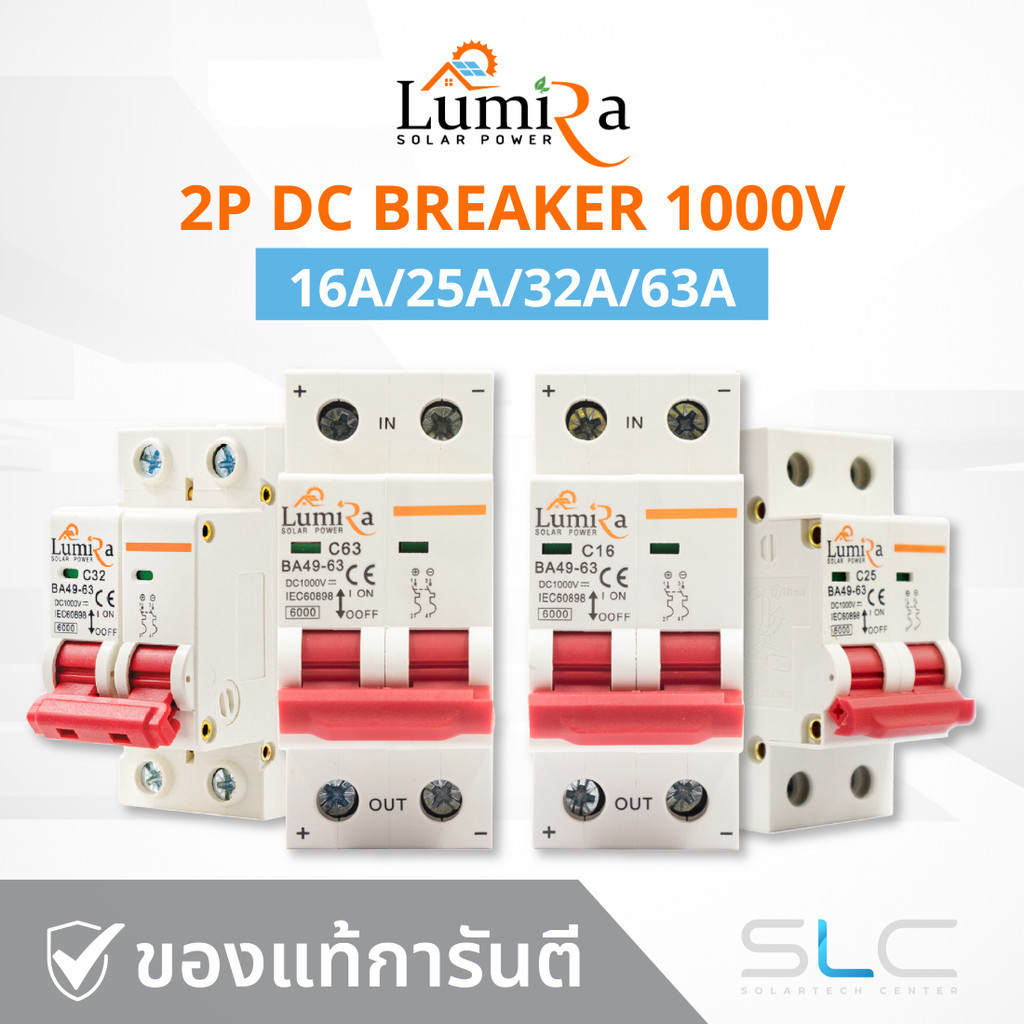 Lumira เบรกเกอร์ DC 2P 1000v 16A/25A/32A/63A สำหรับงานโซล่าเซลล์ สินค้าพร้อมส่งจากไทย ประกัน1ปี