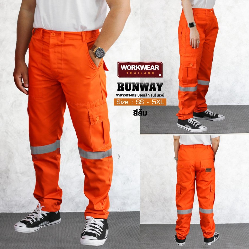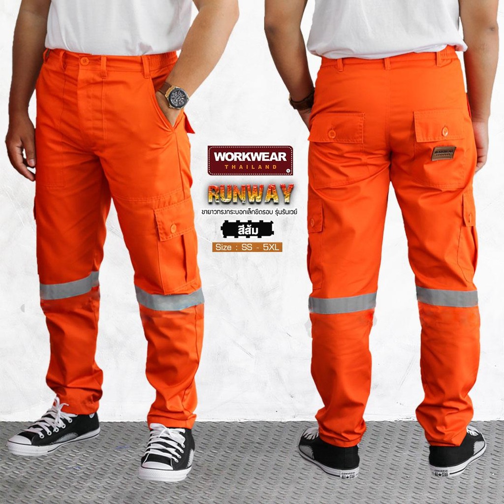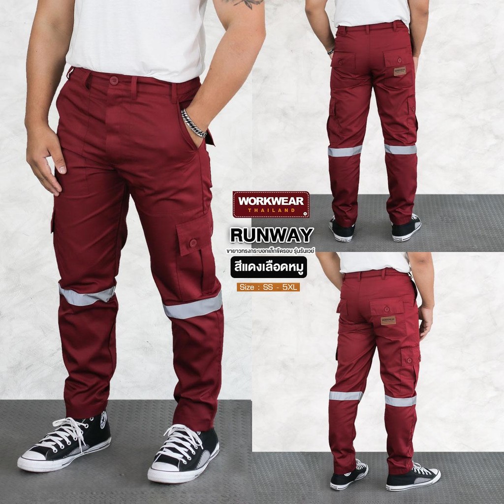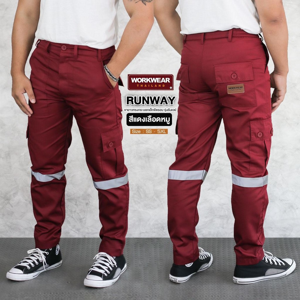 WORKWEAR :กางเกงเซฟตี้ รุ่น Runway (ส้ม+แดงเลือดหมู) Cargo Pants ติดแถบสะท้อนแสง WORKWEARTHAILAND