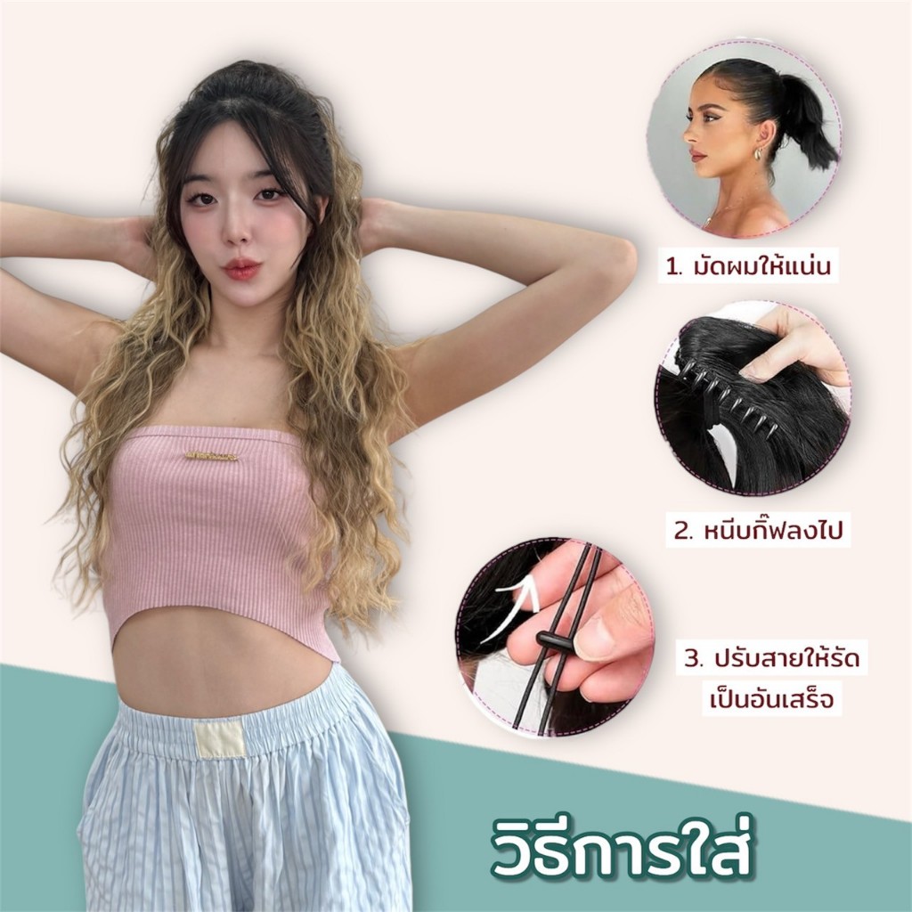 หางม้าหยิกแบบหนีบ สไตล์สาวยุโรป สายฝอ ยาว 30 นิ้ว ไหมพรีเมี่ยม หนาฟู ดูเป็นธรรมชาติ ทรงสวย ใส่สบาย