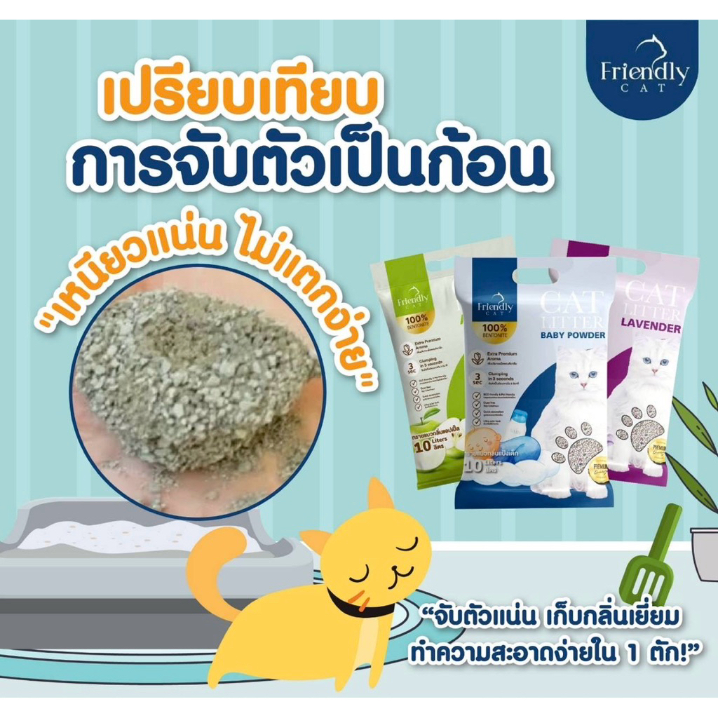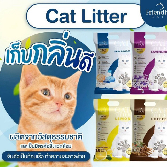 (10ลิตร)🐱ทรายแมว Friendly Cat ขนาด 10 ลิตร เกรดพรีเมี่ยม ทรายแมวเบนโทไนท์ 100% จับตัวไว ดับกลิ่นยาวนาน