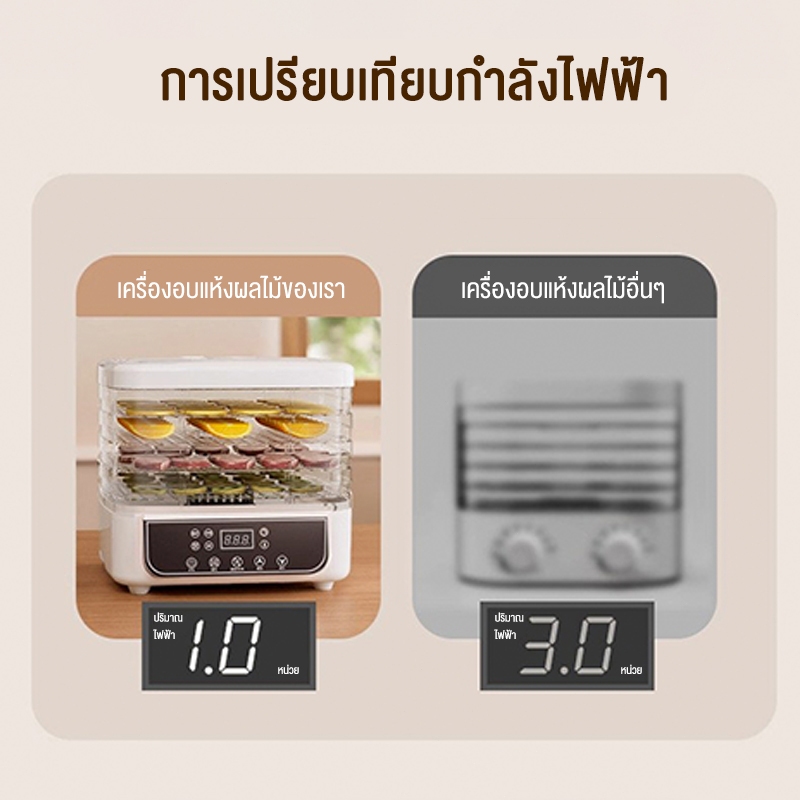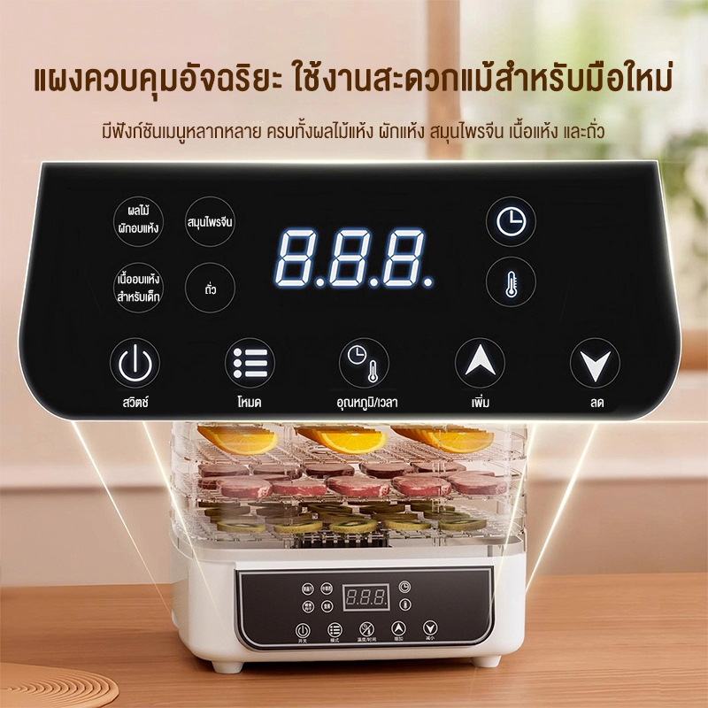 KENAIYA เครื่องอบผลไม้ เครื่องอบแห้งอาหารขนาดเล็ก 5/6 ชั้น แผงหน้าจอสัมผัส ใช้ง่ายในบ้าน FoodDehydrator