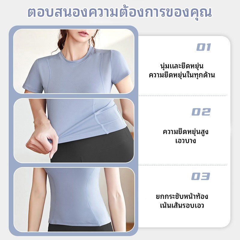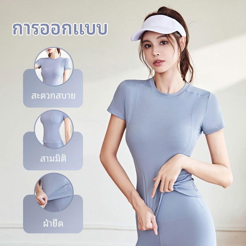 FUYOGI ชุดโยคะแห้งเร็วแขนสั้น สำหรับผู้หญิง เสื้อสำหรับออกกำลังกาย เหมาะสำหรับโยคะ วิ่ง และฟิตเนส