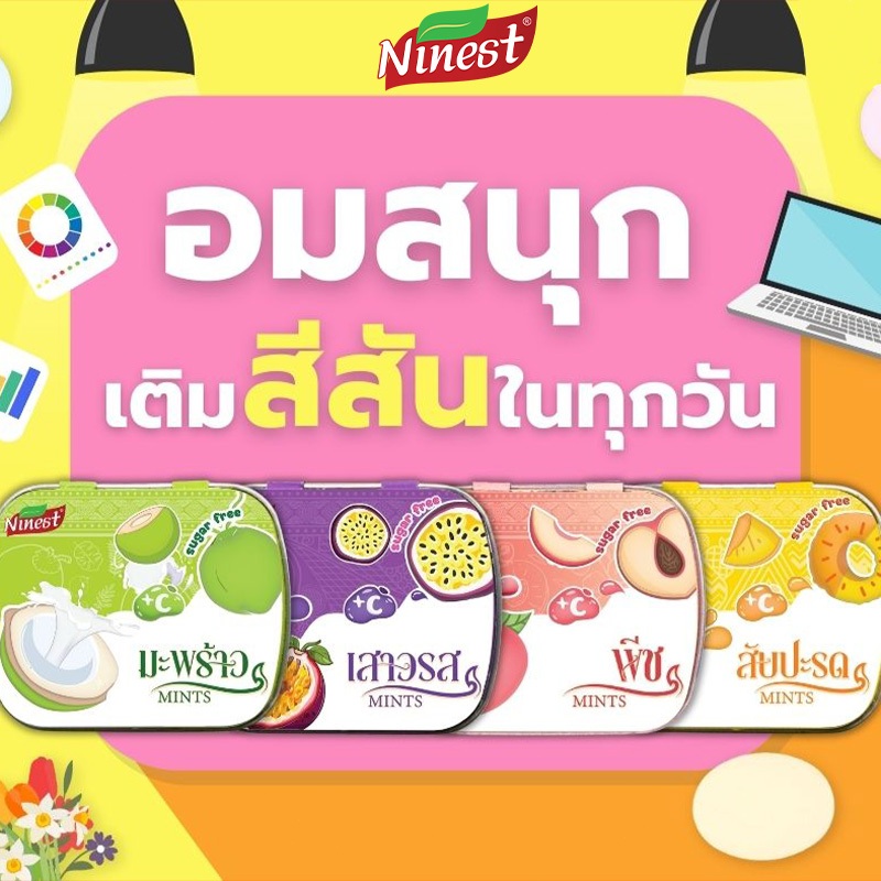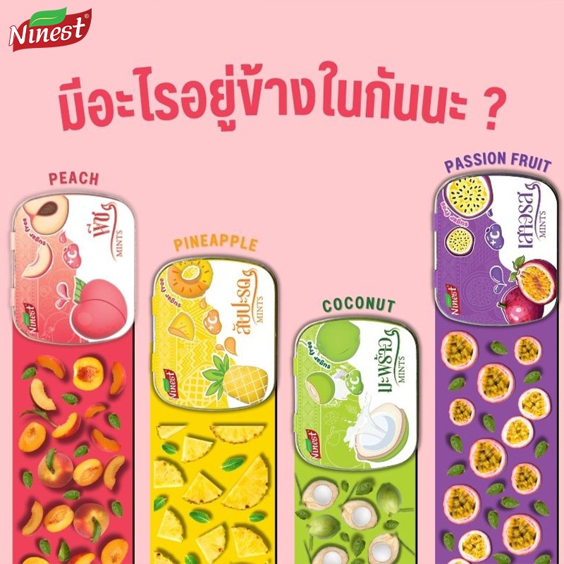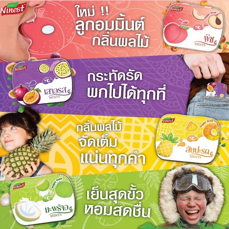 Ninest ลูกอมมิ้นต์กลิ่นผลไม้ ลูกอม มินท์ ดับกลิ่นปากปราศจากน้ำตาล วิตามินซีรสผลไม้ ปราศจากน้ำตาล ให้ความสดชื่น