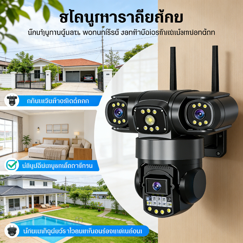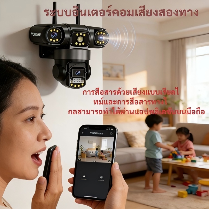 YOOSEE กล้องวงจรปิด ไร้สาย 4G/WiFi กันน้ำ 360องศา 3เลนส์ 15MP ติดตามอัตโนมัติ เสียงสองทาง ประกัน1ปี