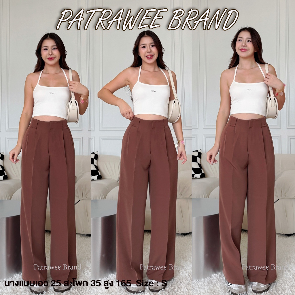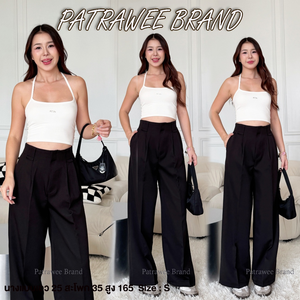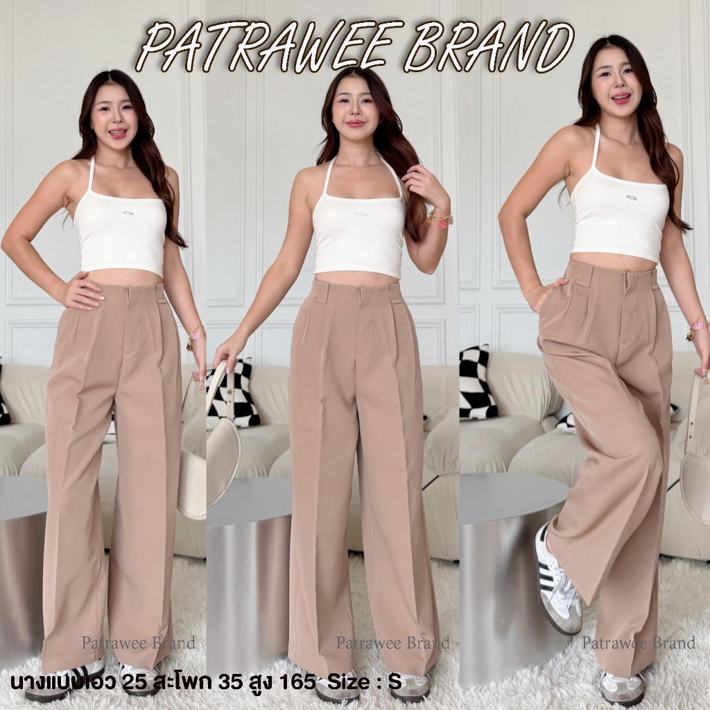 Patrawee P49 กางเกงขายาวทรงกระบอกใหญ่ กางเกงขากระบอกใหญ่ ขอบเอวในตัว ทรงสวย ใส่สบาย ผ้าฮันนี้