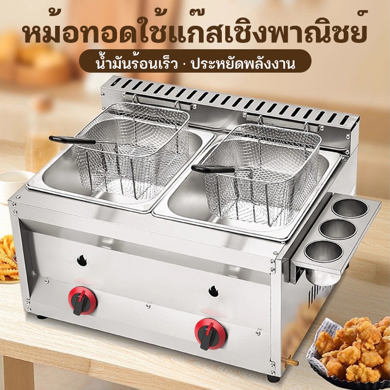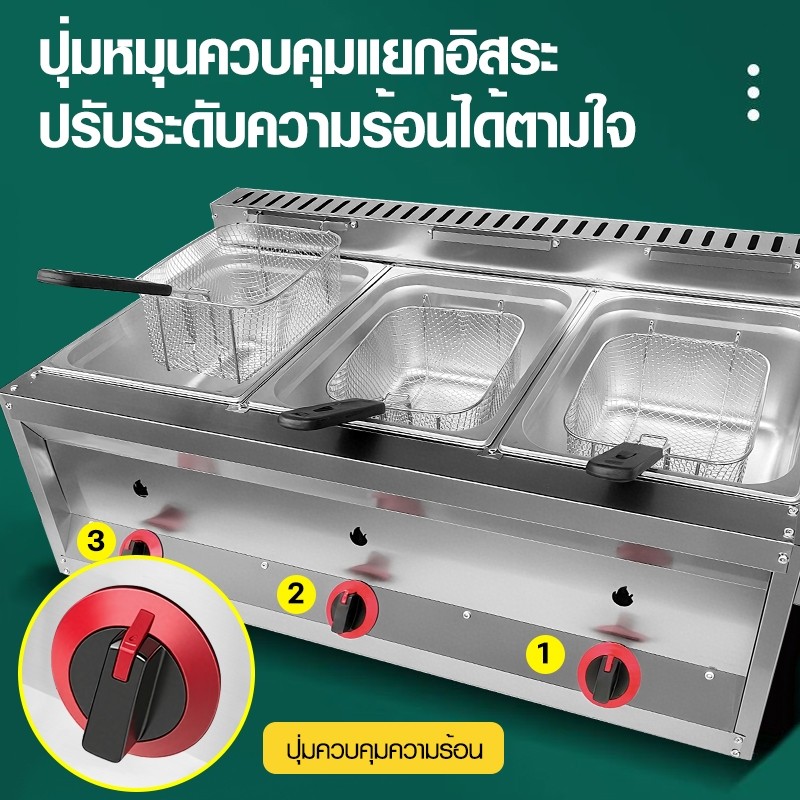 KONIG สแตนเลส หม้อทอดแก๊ส ข้น หม้อทอดเฟรนฟราย สามกระบอก เครื่องทอดเฟรนฟราย เครื่องใช้ในครัว ทางการค้า เครื่องทอดอเน