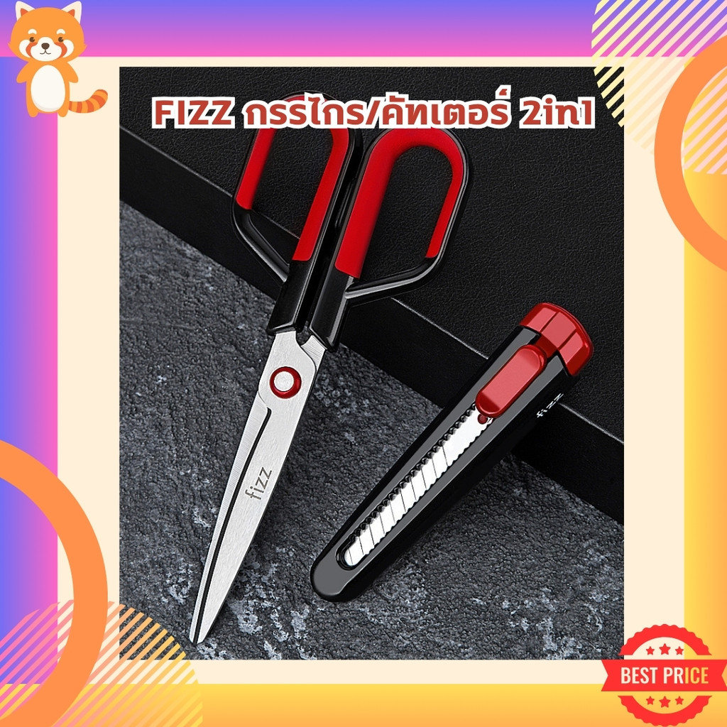 FIZZ กรรไกร / คัทเตอร์ 2in1 ใบมีดเคลือบฟลูออรีน คมกริบ เป็นกรรไกรและตรงปลอกเป็นคัทเตอร์ในตัว ตัดเทปกาวได้ ไม่มีคราบกาว