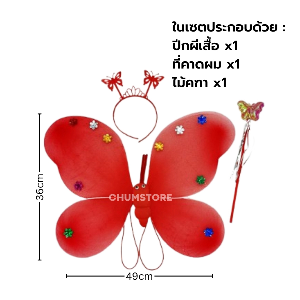 ปีกผีเสื้อ+คาดผม+ไม้คฑา ปีกผีเสื้อ2ชั้น ชุดแฟนซี ชุดงานแสดง ชุดขึ้นเวที ปีกผีเสื้อเด็ก