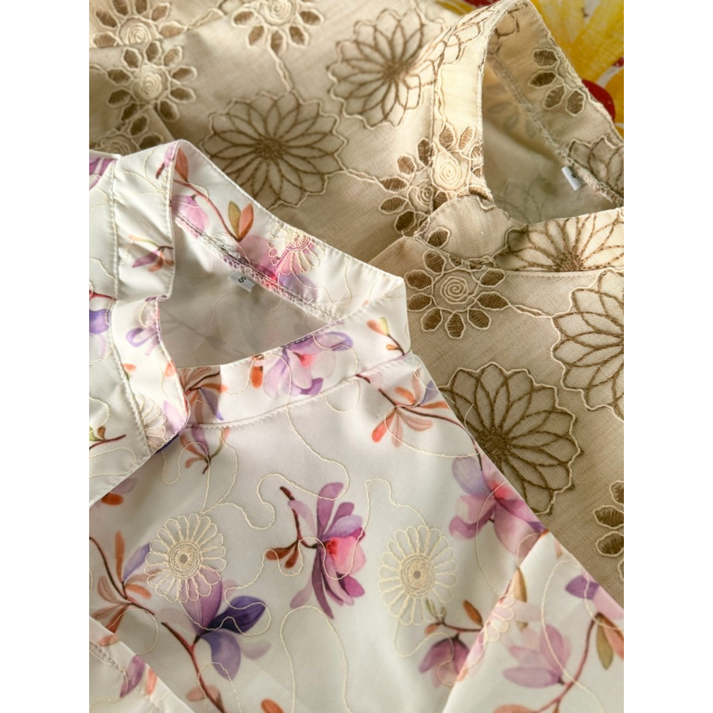 เสื้อบ่าบ๋า ผ้าลูกไม้ปักอัดกาว