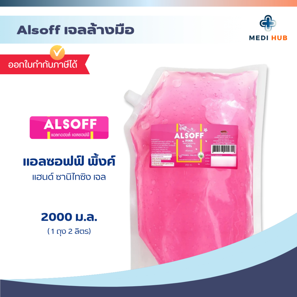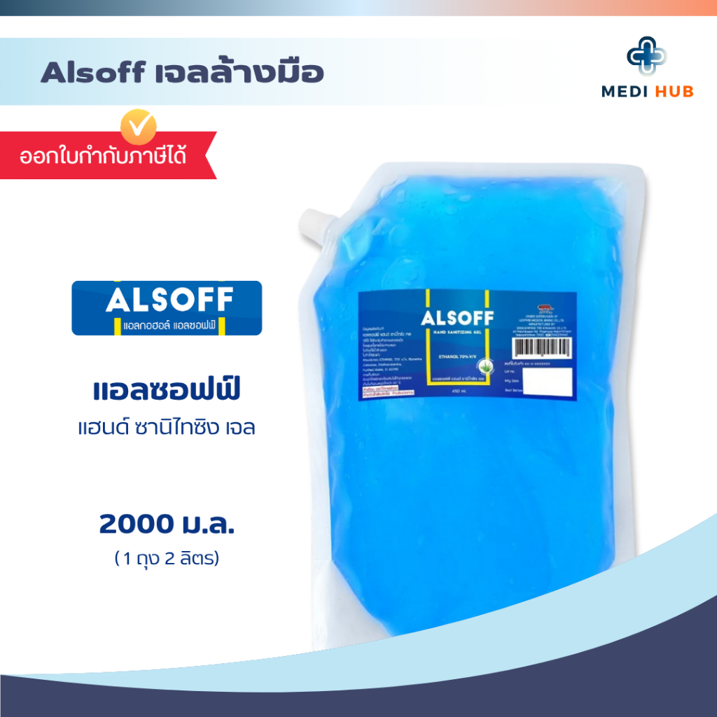เจลแอลกอฮอลล์ (จำนวน 1 ถุง) ขนาด 2 ลิตร เจลล้างมือ Alsoff Alcohol hand gel