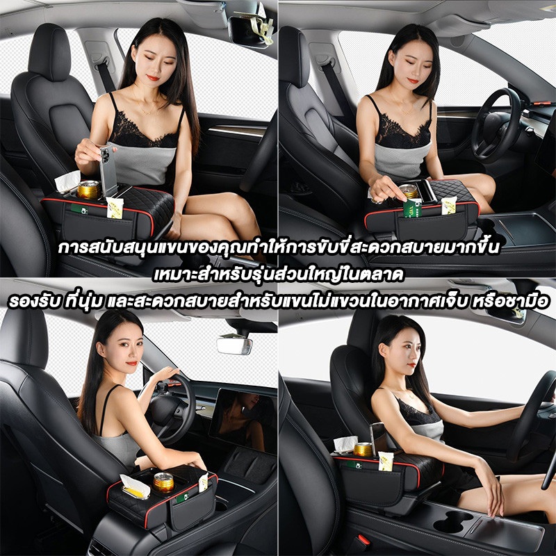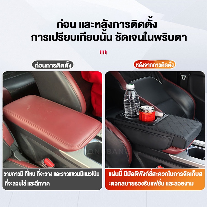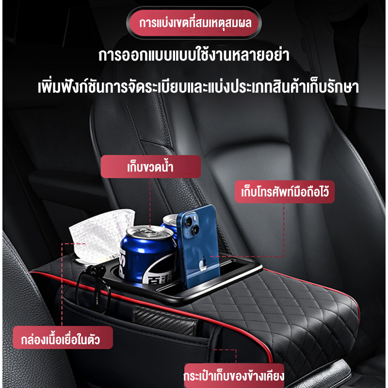 🚚ท้องถิ่น🚚4in1 กล่องเก็บคอนโซลกลางรถ พร้อมที่วางแก้ว PU ที่เพิ่มความสูงทนทานสากล