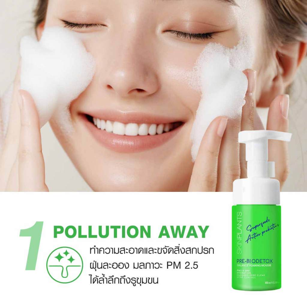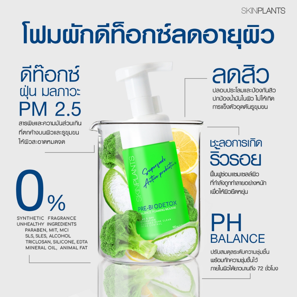 SKINPLANTS Pre-Biodetox Balance Foaming Mousse 100ml. โฟมล้างหน้า ดีท็อกซ์ผิว ลดอายุผิว เคลียร์สิว