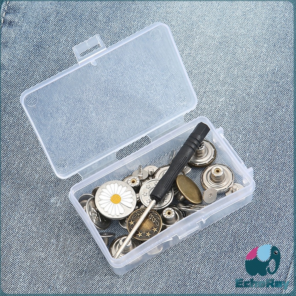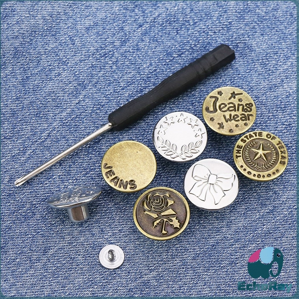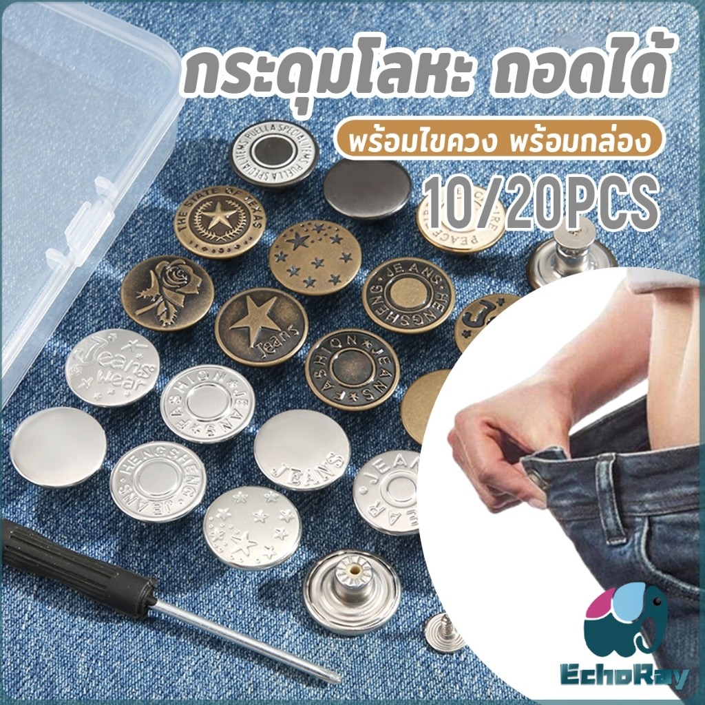 E.R กระดุมขยายเอวกางเกงยีนส์ กระดุมโลหะ ถอดได้ ใช้ซ้ําได้ พร้อมไขควง พร้อมกล่อง 10 ชิ้น/20 ชิ้น Jeans buttons