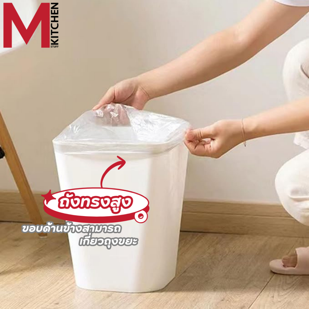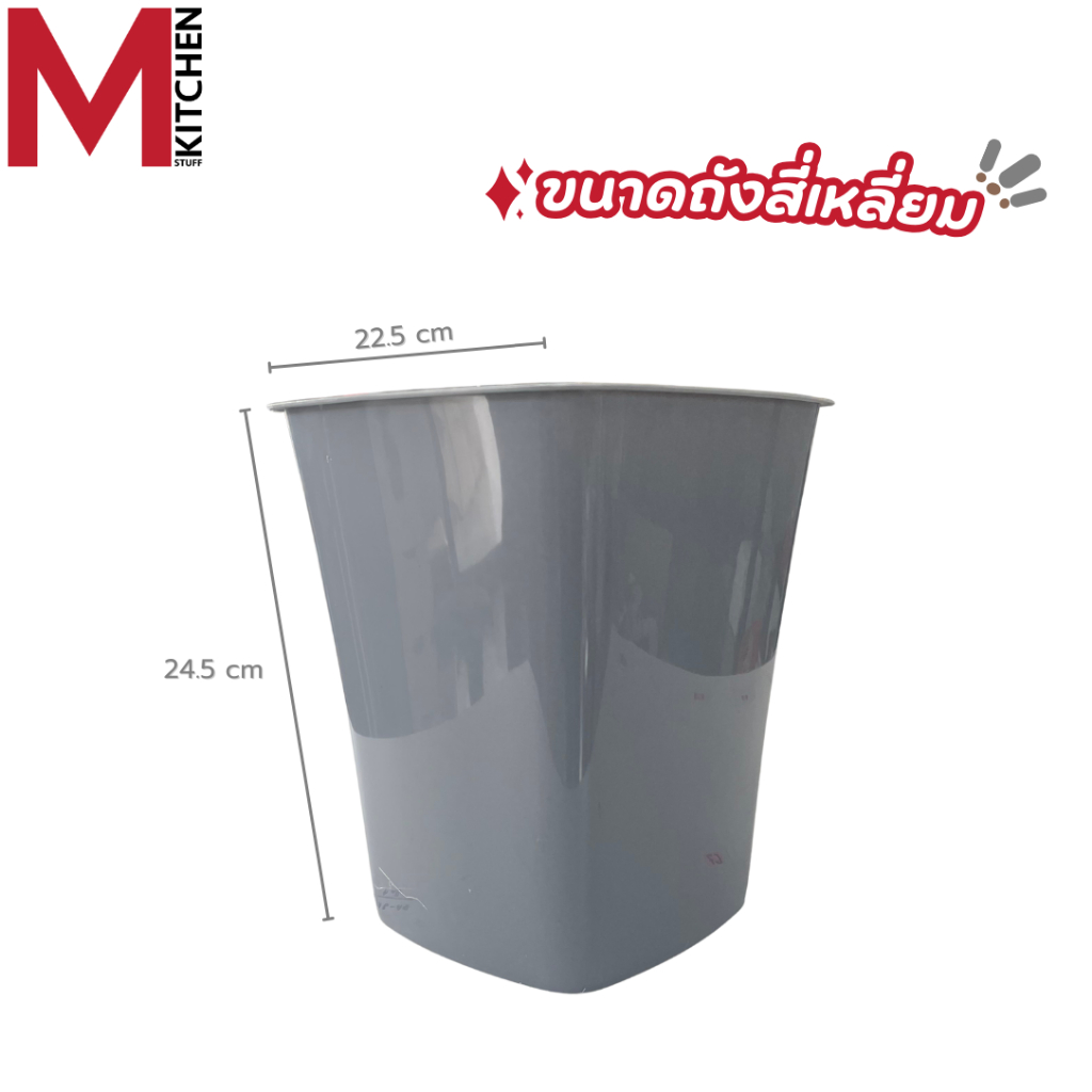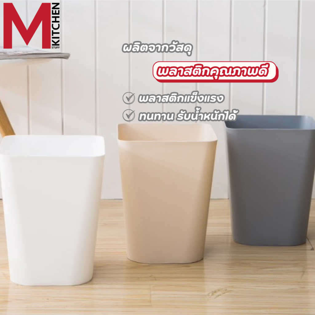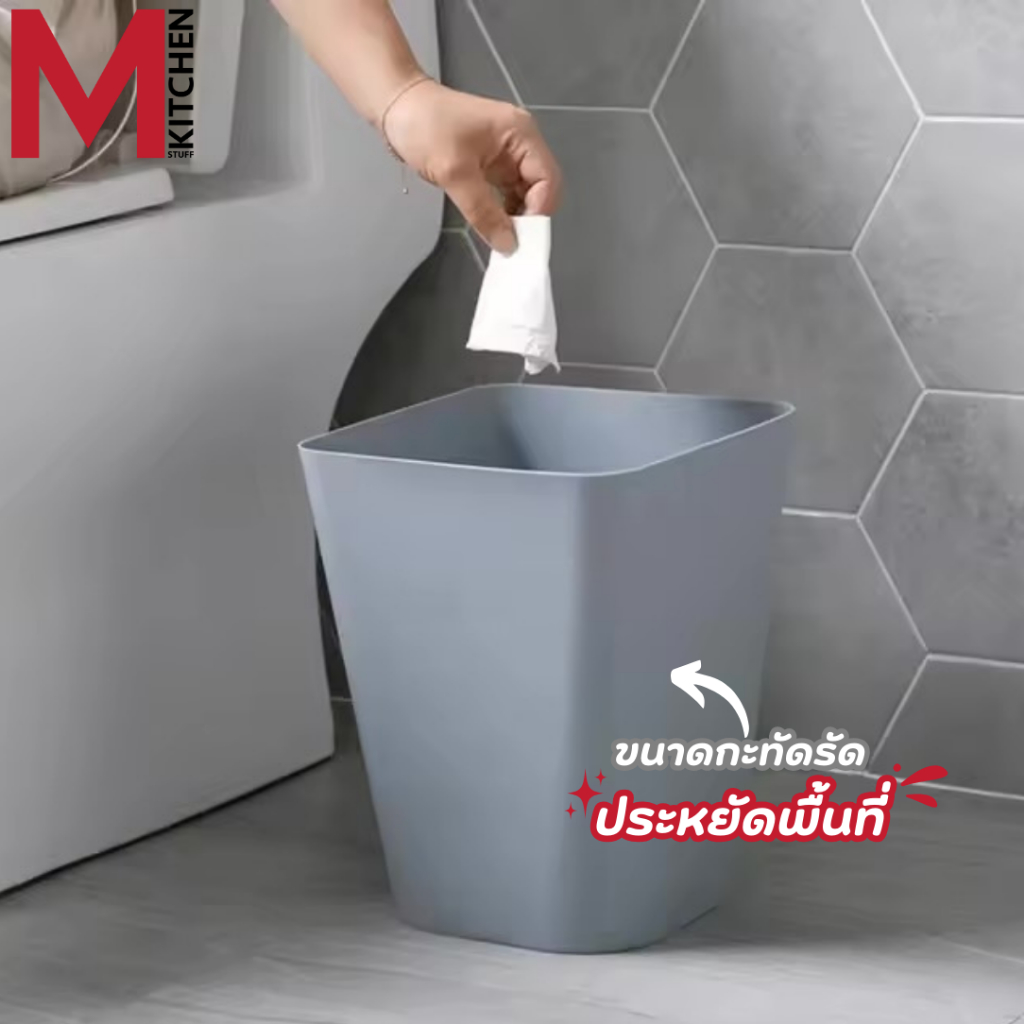 M KITCHEN ถังขยะ ถังขยะมินิมอล ทรงเหลี่ยม พลาสติก แข็งแรงทนทาน ไม่มีฝาปิด S-0119 (C0)