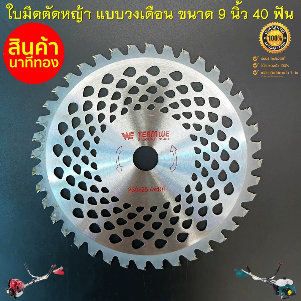 ใบมีดตัดหญ้า ใบวงเดือนตัดหญ้า ขนาด 9 นิ้ว 40 ฟัน ( สินค้าโปรนาทีทอง ราคาพิเศษ ) ฟันคม ติดเล็บคาร์ไบด์ ตัดหญ้าไม่กระเด็น