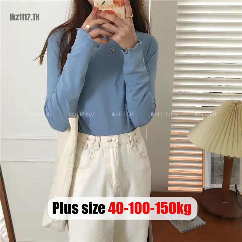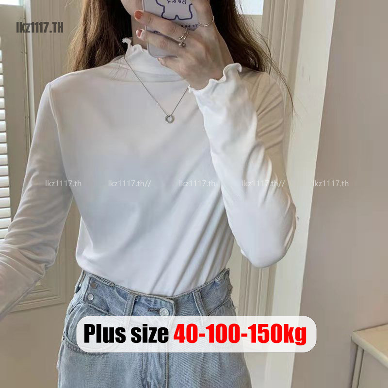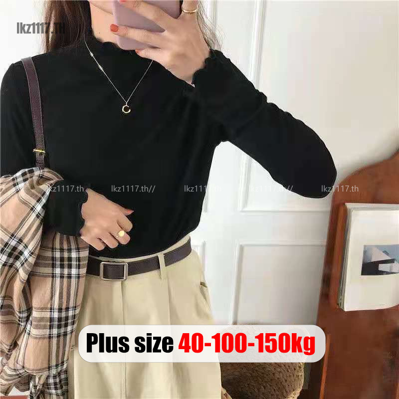 Plus Size T-Shirts🎀เสื้อยืดสาวอวบอ้วนไซส์ใหญ่ เสื้อยืดผู้หญิงแขนยาวหลวมคอเต่าแฟชั่นฤดูใบไม้ผลิสไตล์เกาหลี Oversize Women Clothes