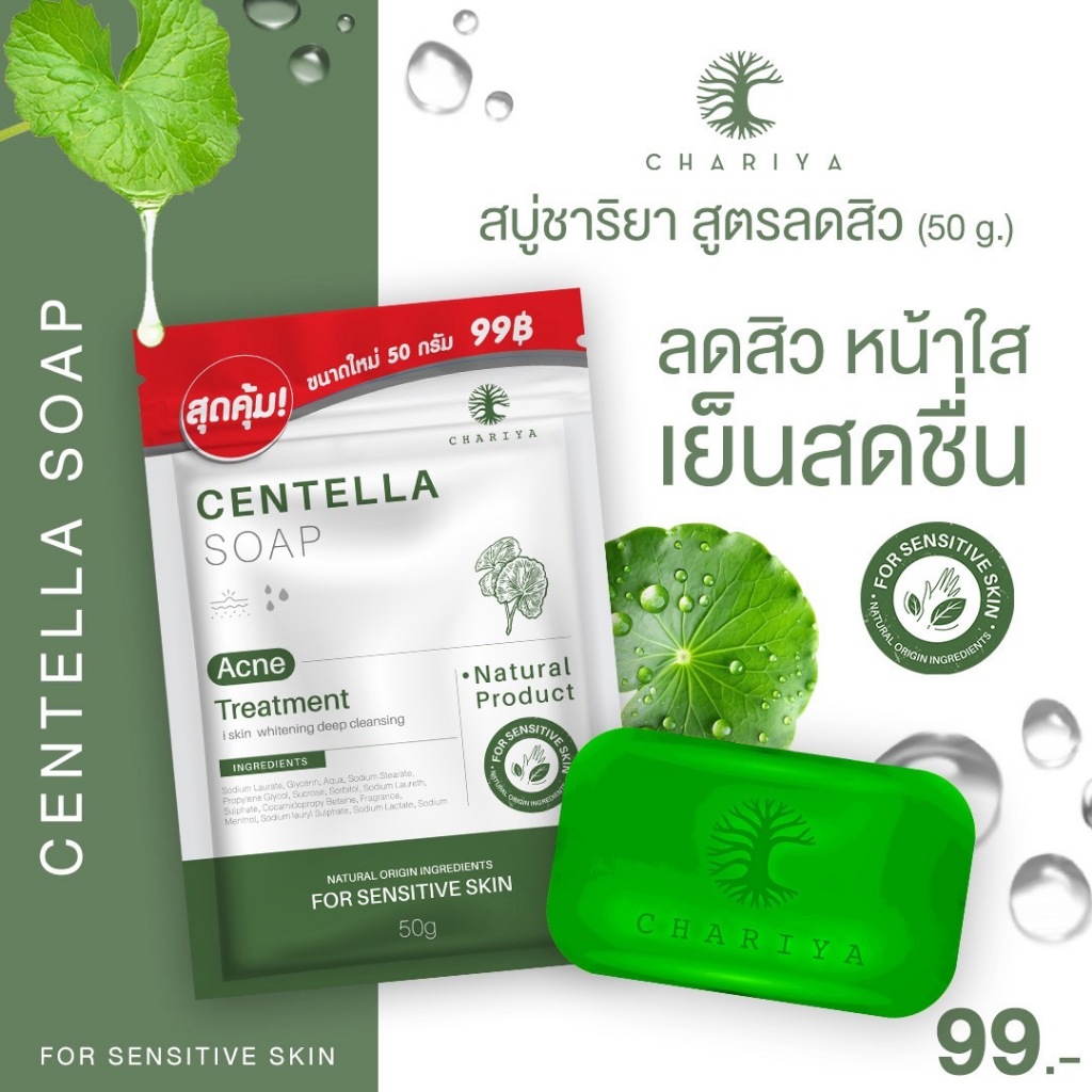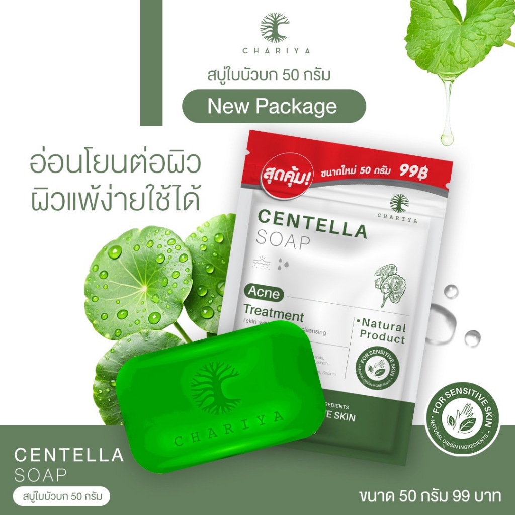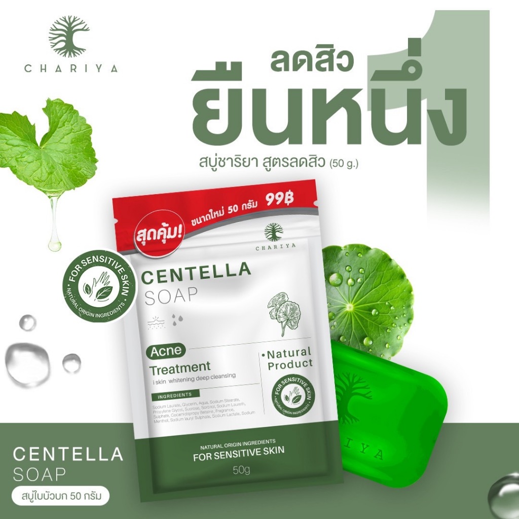 ชาริยา สบู่ใบบัวบกชาริยา | ขนาด 50 กรัม ลดสิว กระชับรูขุมขน ผิวสุขภาพดี ขนาดพิเศษจำหน่ายแค่ช่องทางบริษัท