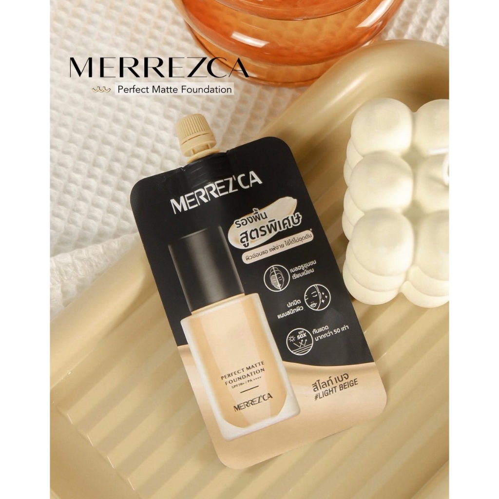 MERREZCA Perfect Matte Foundation SPF50+/ PA++++ รองพื้นเนื้อแมตต์ ( 1&3 ซอง ) Merrezca Skin up liquid foundation Sachet