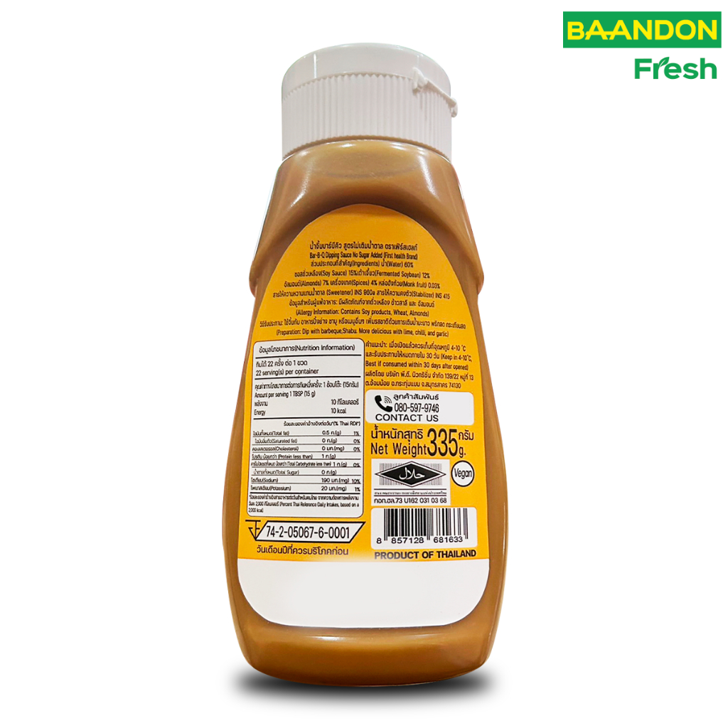 First Health น้ำจิ้มบาร์บีคิว น้ำจิ้มปิ้งย่าง สูตรคีโต (KETO Bar B Q Dipping Sauce) 335 กรัม