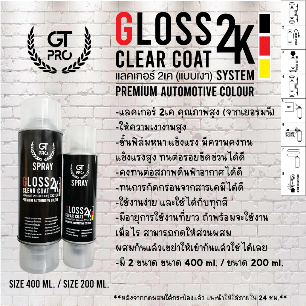 GT Pro แลคเกอร์2K คุณภาพสูง (แบบเงา) /GT Pro Gloss Clear Coat 2K (Premium Clear Coat)(DIY_AUTO)