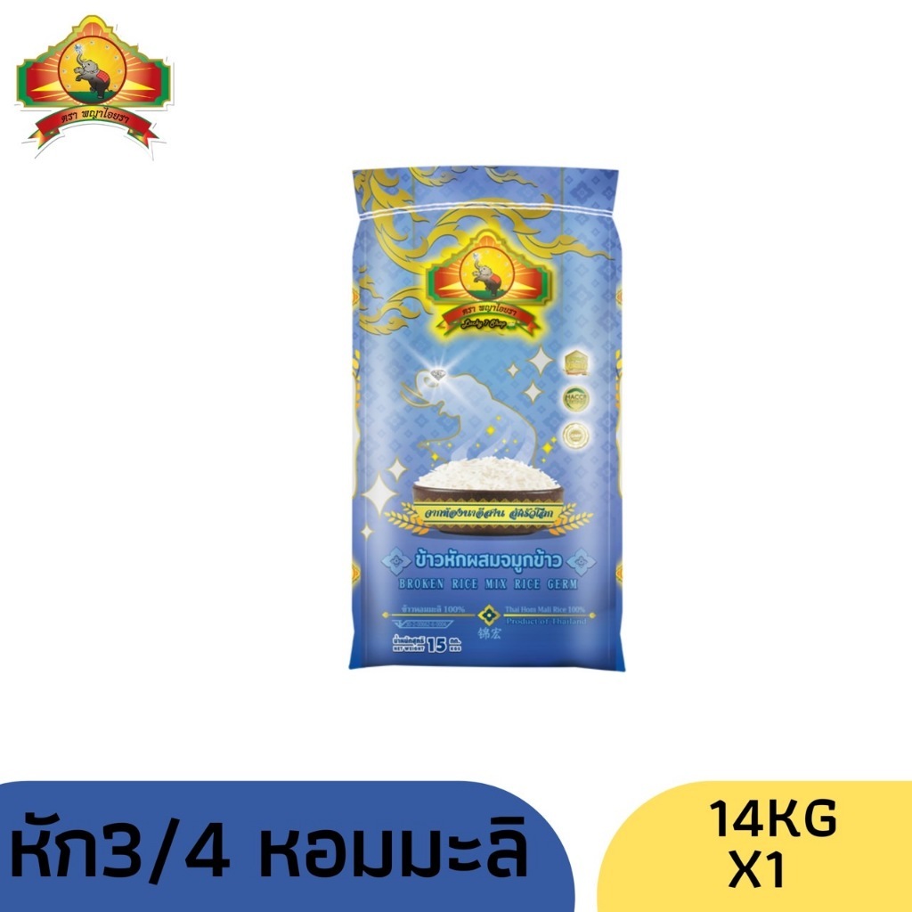(ซื้อในไลฟ์ใช้โค้ด40% ตกกิโลละ 11).- ข้าวหักผสมจมูกข้าว หอมมะลิแท้100% 14KG ตราพญาไอยรา เกรดส่งออก