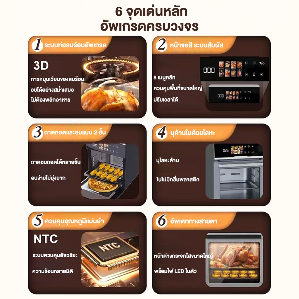 [รับประกัน5 ปี เปลี่ยนใหม่ฟรี]หม้อทอดไร้น้ำมัน ความจุขนาดใหญ่ 20 ลิตร เมนูอัปเกรด พื้นที่อบ 3 ชั้น ตอบโจทย์ความต้องการในชีวิตประจำวันได้อย่างสบาย air fryer