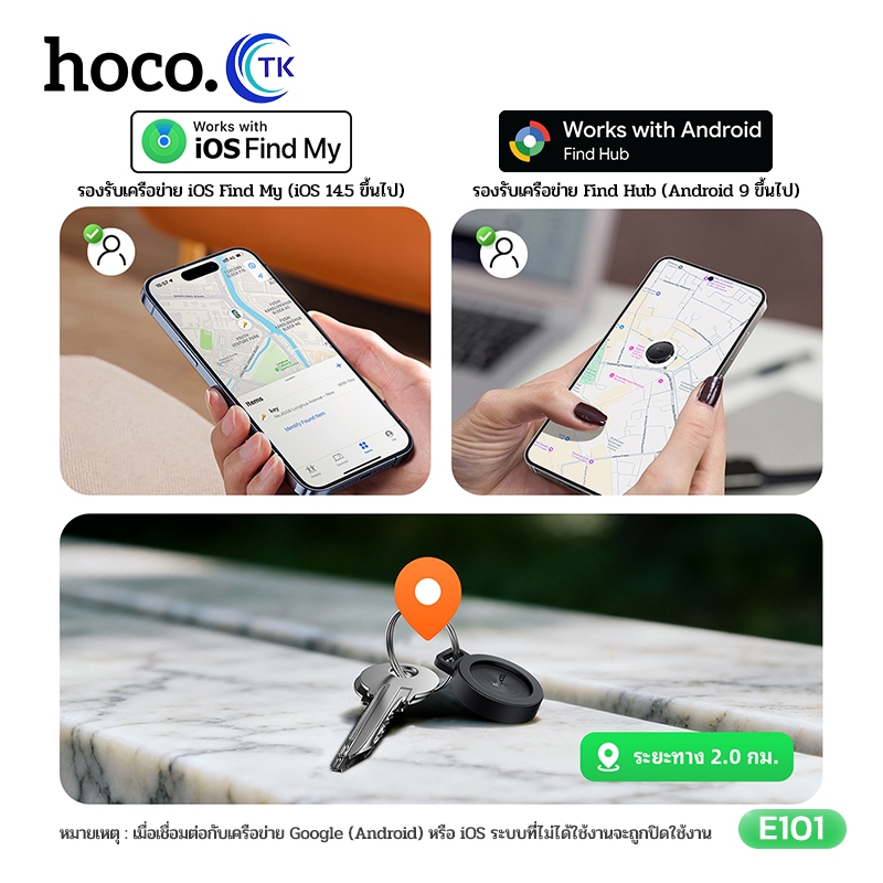 HOCO GPS เครื่องมือติดตามสิ่งของแม่นยำ ป้องกันการสูญหาย ระบบติดตามคู่ Android และ iOS ใช้งานได้นาน E101