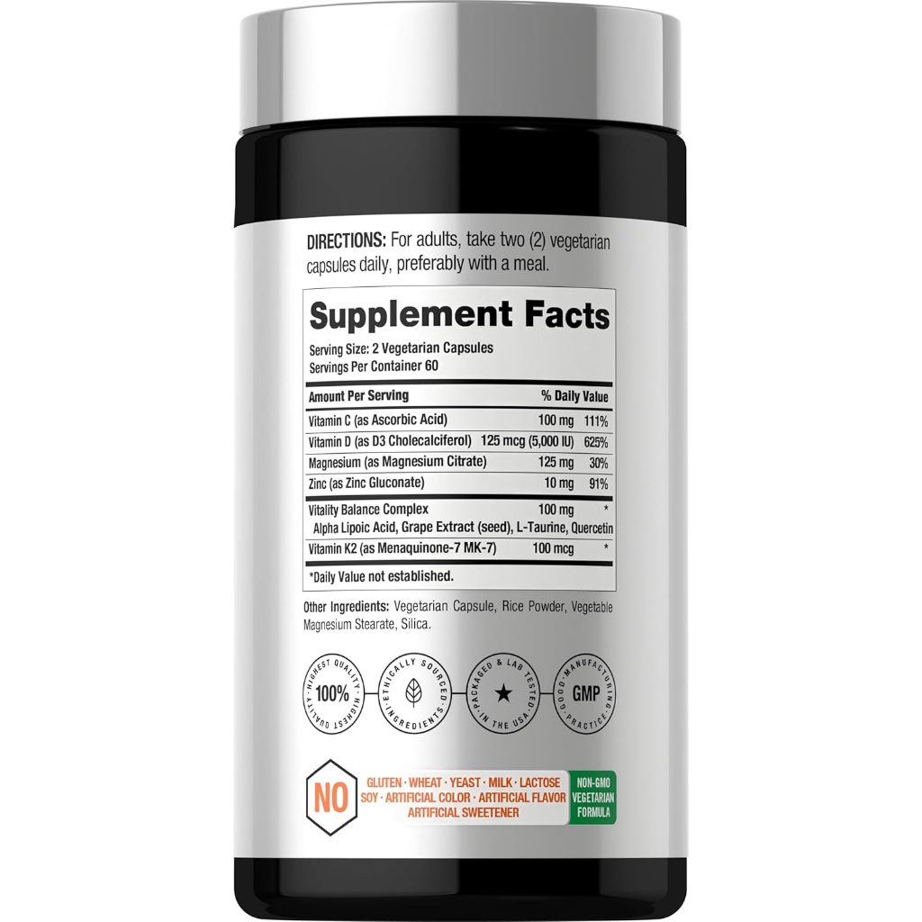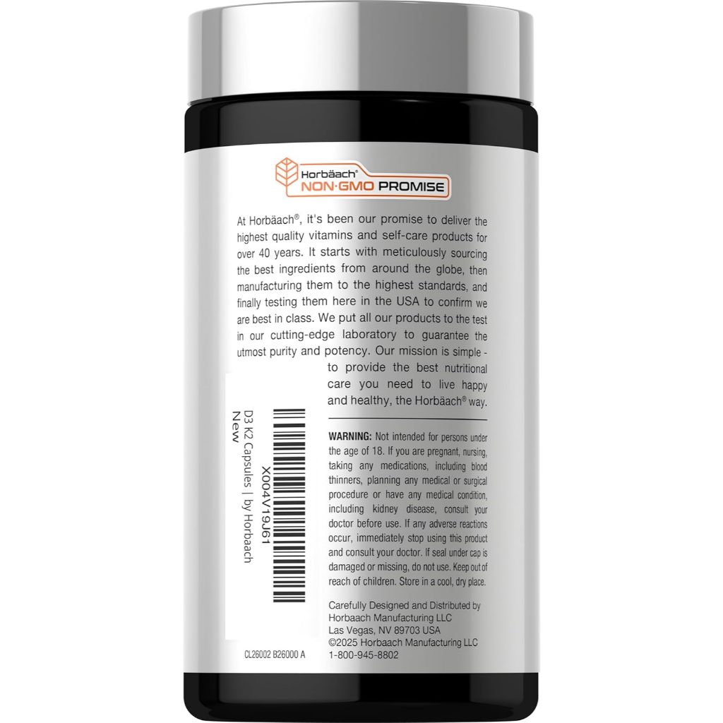 กระดูกแน่น เสริมภูมิ Horbäach Vitamin D3 K2 5000IU + Mg Zinc Quercetin 120 Veg Caps (No.4129)