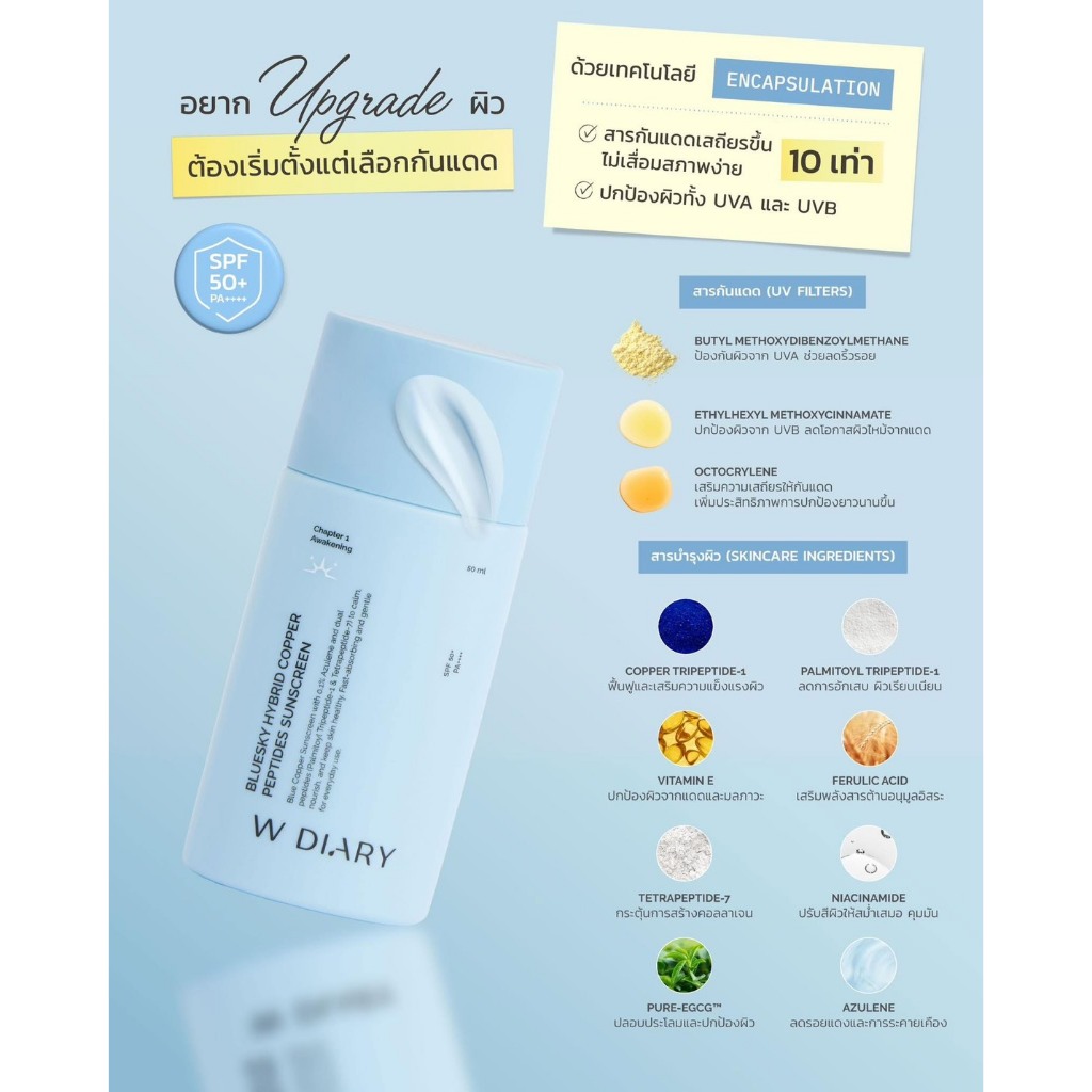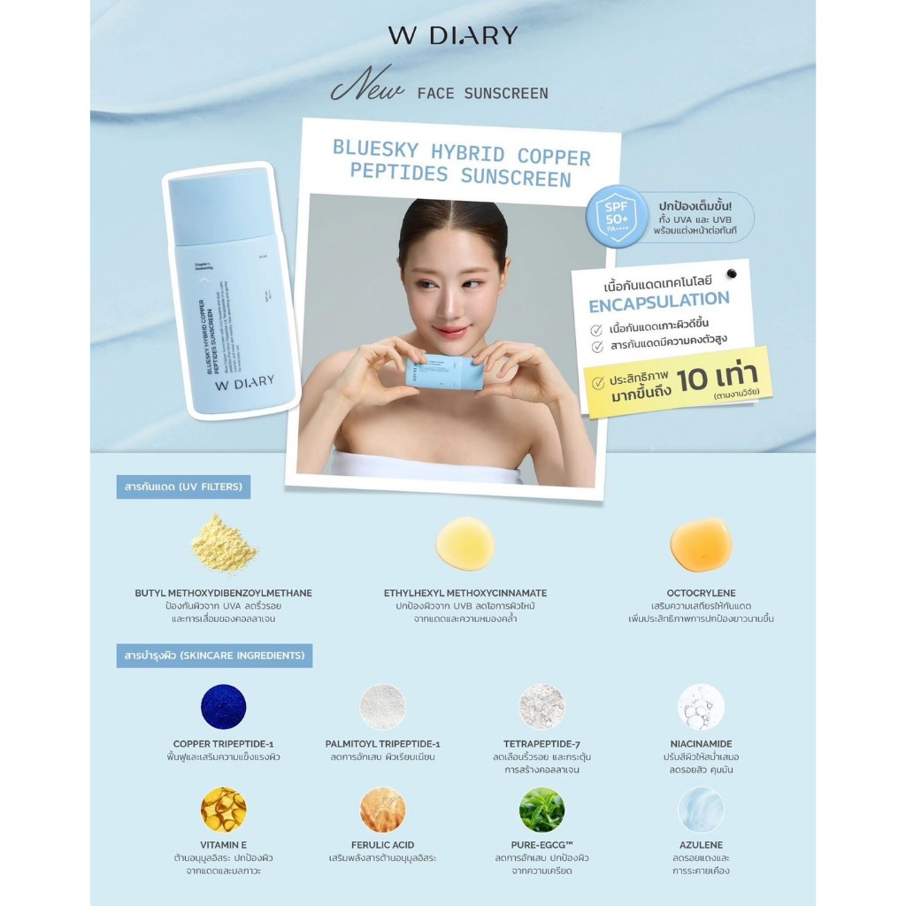 W DIARY Bluesky Hybrid Copper Peptides Sunscreen 50ml.