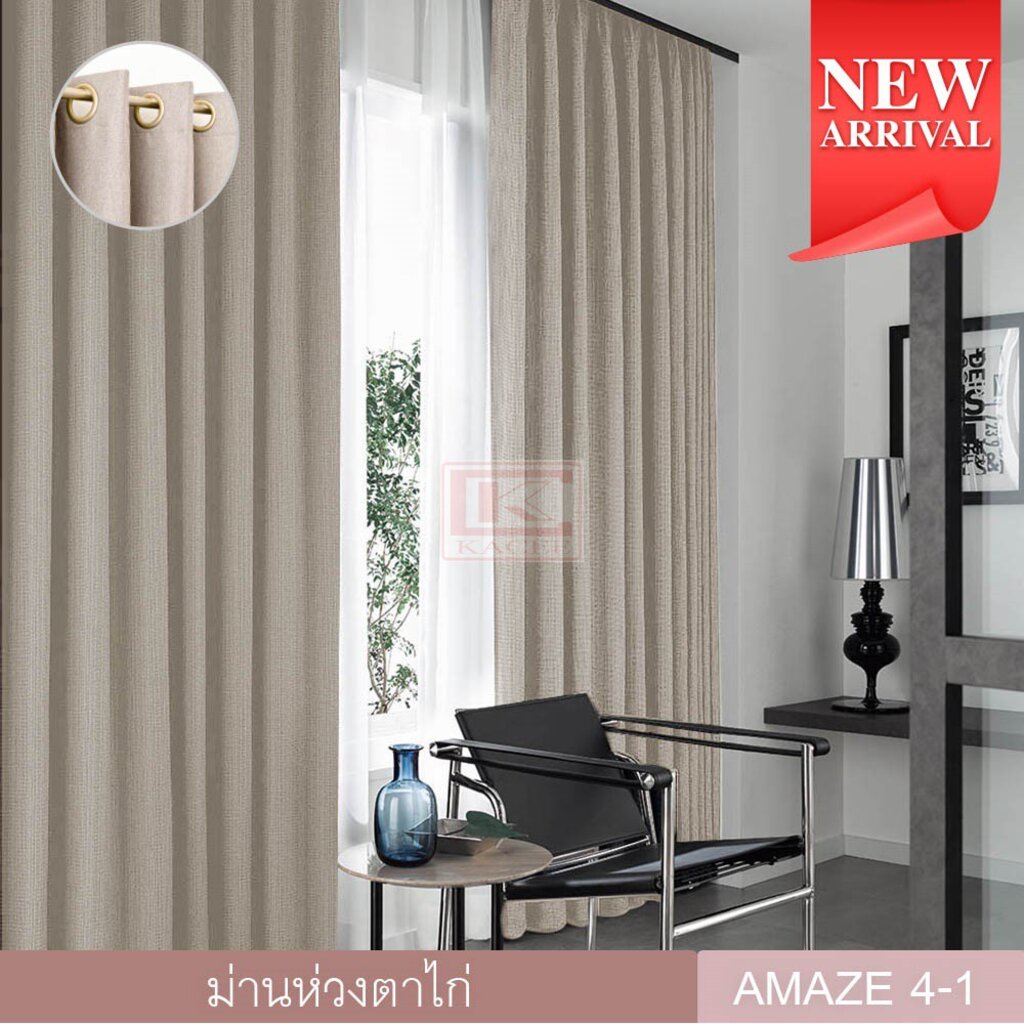 KACEE ผ้าม่าน ผ้าม่านสำเร็จรูป ห่วงตาไก่ ผ้ากันแสง UV เนื้อหนาไม่อมฝุ่น ทึบแสง 99% รุ่น AMAZE 4 (1 ผืน)