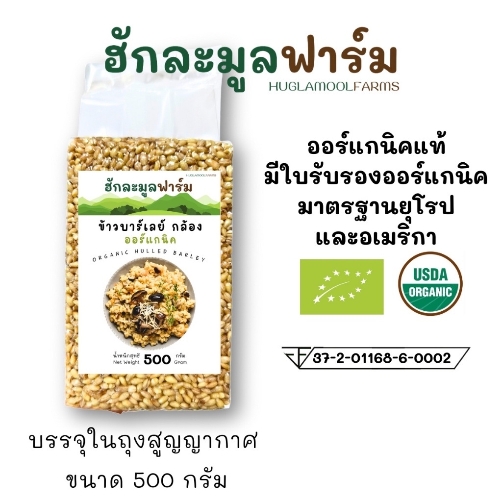 ข้าวบาร์เลย์ ออร์แกนิค 500กรัม ไม่ขัดสี ตราฮักละมูลฟาร์ม Organic Barley Grain บาเลย์ huglamoolfarm