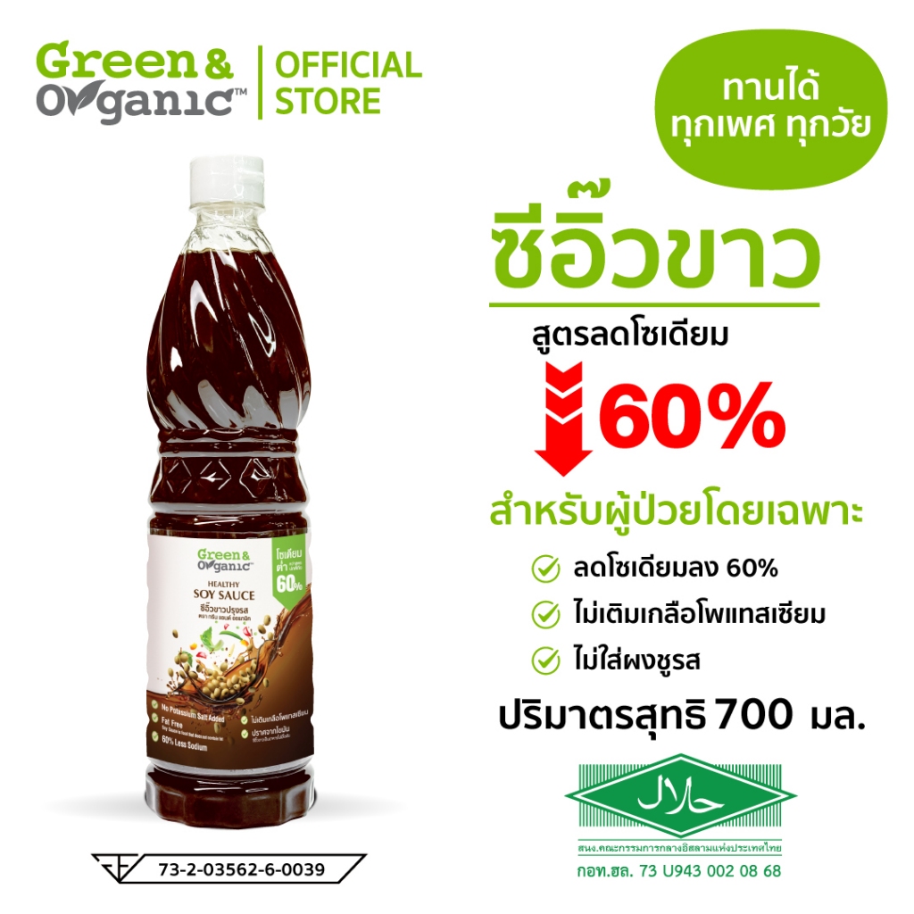 Green&Organic [แพ็คคู่ สุดคุ้ม!!] ซีอิ๊วขาว+ซอสหอยนางรม สูตรลดโซเดียม โซเดียมต่ำ ผู้ป่วยไตทานได้