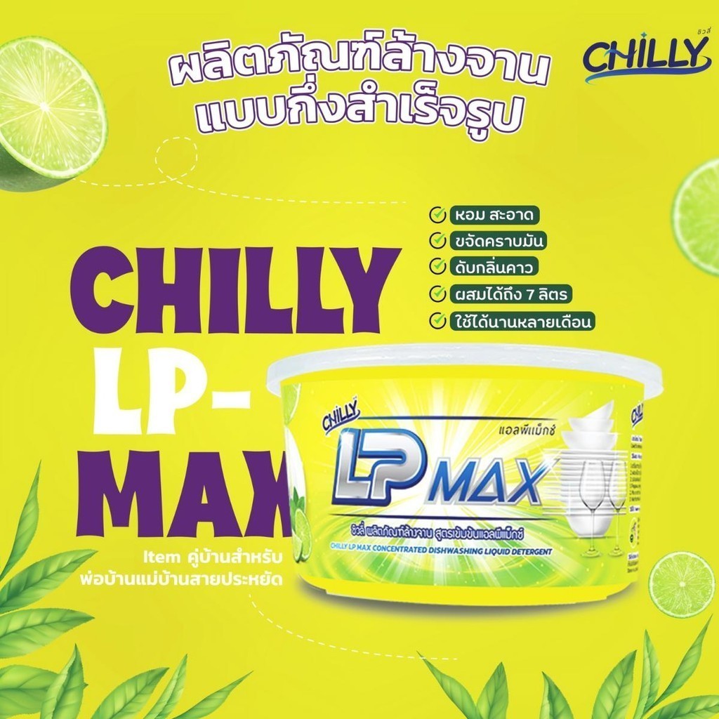 LP-Max น้ำยาล้างจานกึ่งสำเร็จรูป แอลพีแม็กซ์ (Chilly LP-Max) ขนาด 1000 มล. กระปุกกวนเอง ทำได้ 7kg.