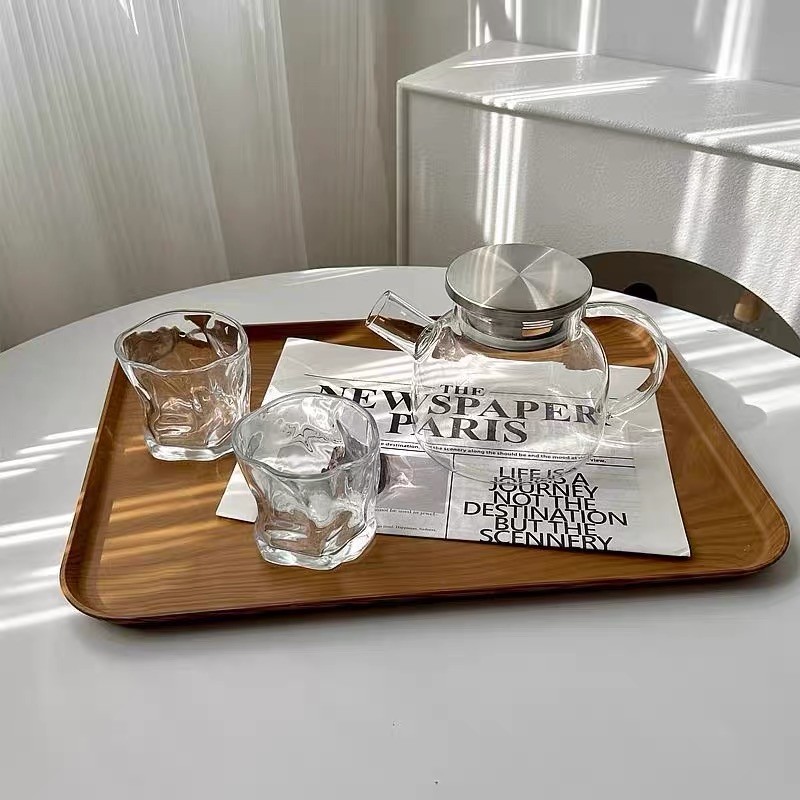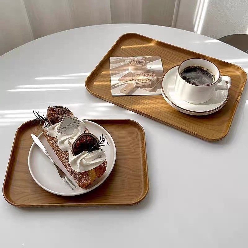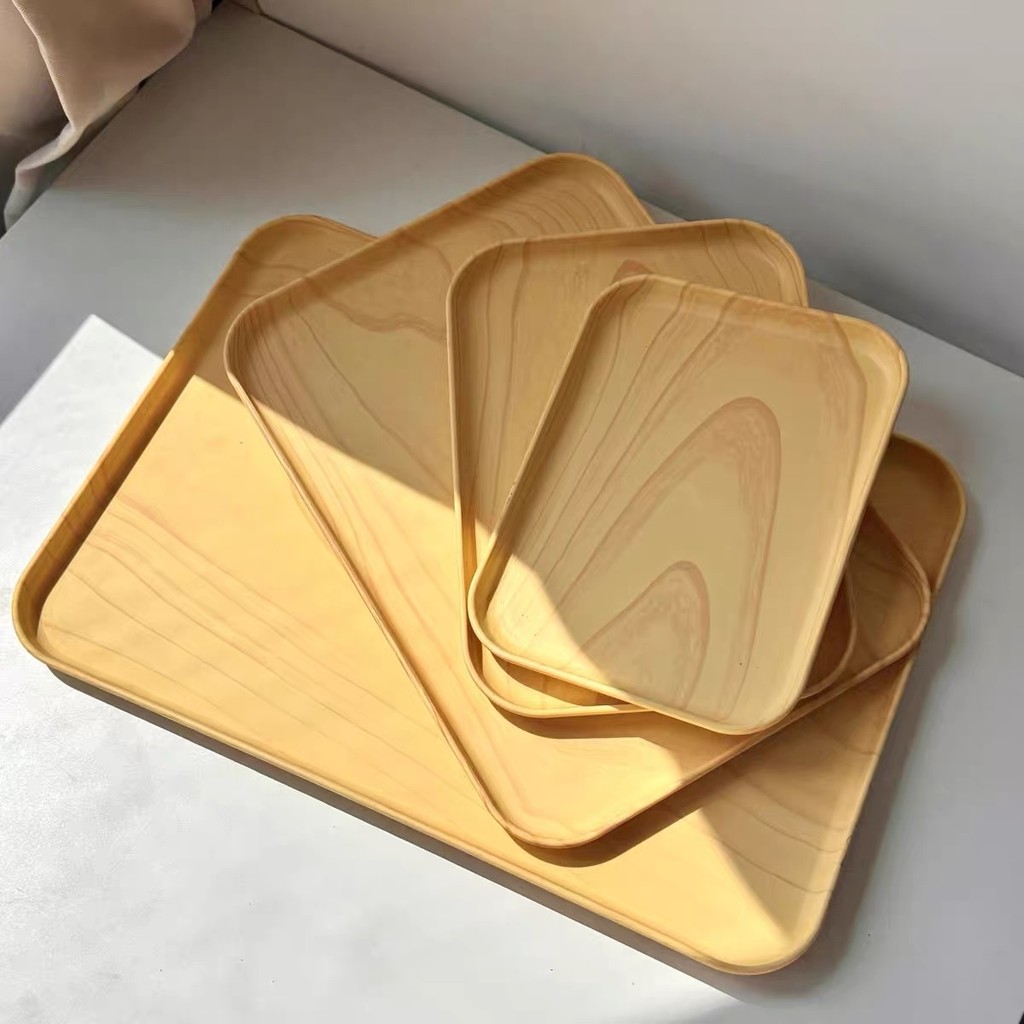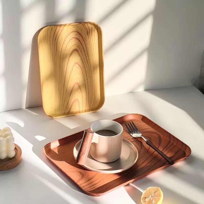 จาน ถาด สไตล์ญี่ปุ่น มินิมอล พลาสติกเกรดดี ลายไม้เทียม ถาดใส่ขนม เสิร์ฟอาหาร 3 ขนาด KKHOME