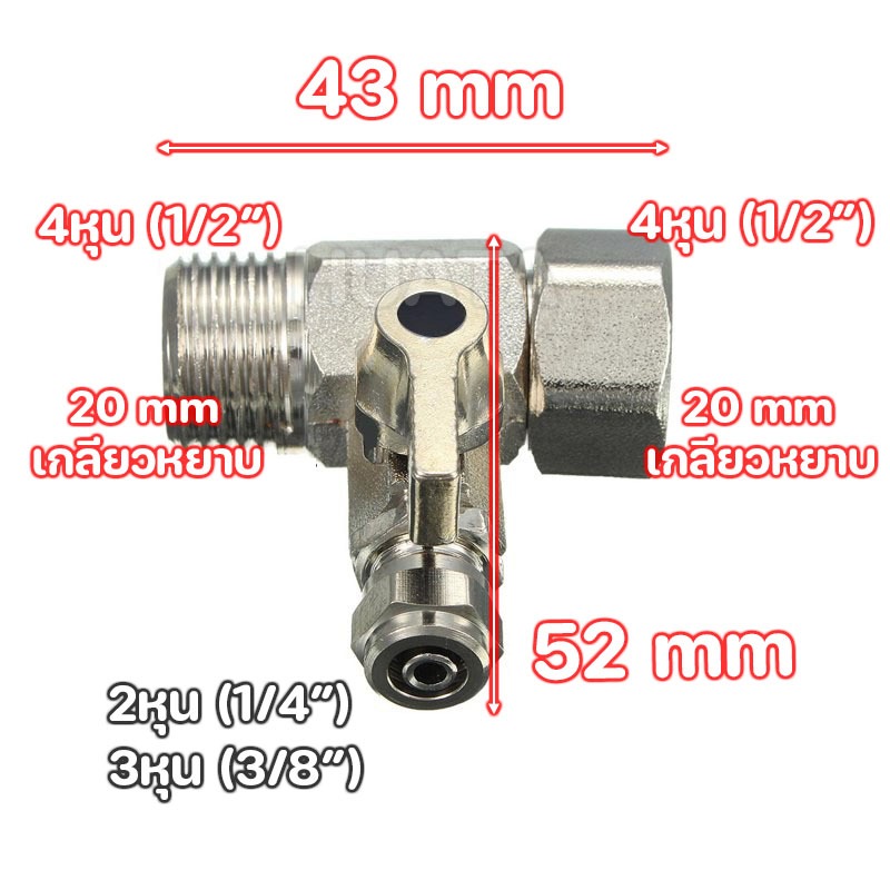 บอลวาล์ว3ทาง สแตนเลส เครื่องกรองนํ้า ขนาด 2หุน 2.5หุน 3หุน เกลียว Stainless Water Dispenser Ball Valve