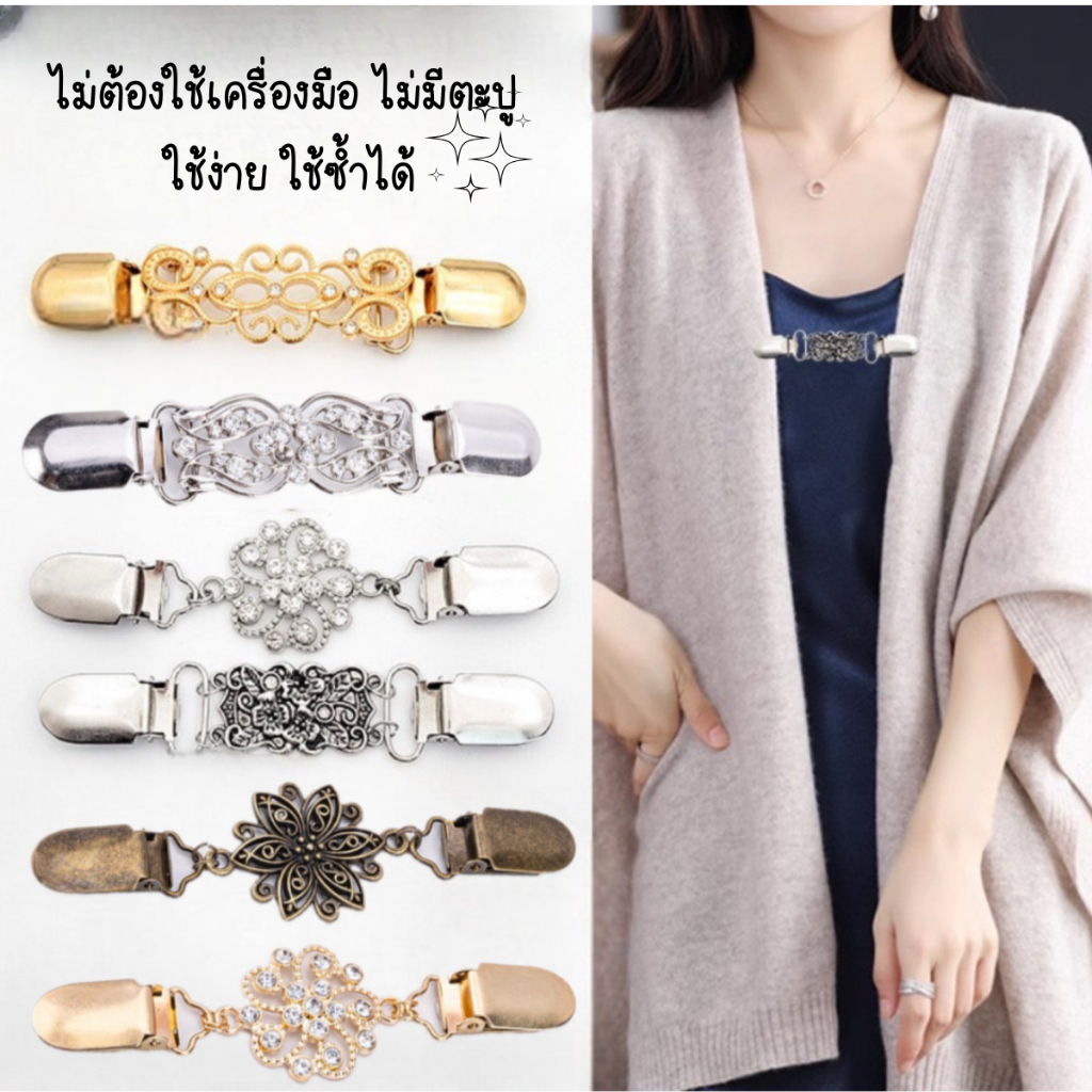พร้อมส่ง!! คลิปหนีบผ้าคลุมไหล่ หนีบเสื้อกันหนาวย้อนยุค วินเทจ ไม่ทำให้เสื้อผ้าเสียหาย ( คลิปหนีบ )