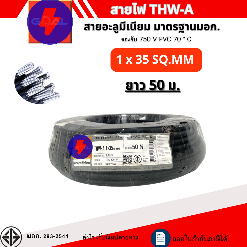 สายไฟอะลูมิเนียม สายมีเนียม THW-A เบอร์35 ความยาว 50เมตร 100เมตร
