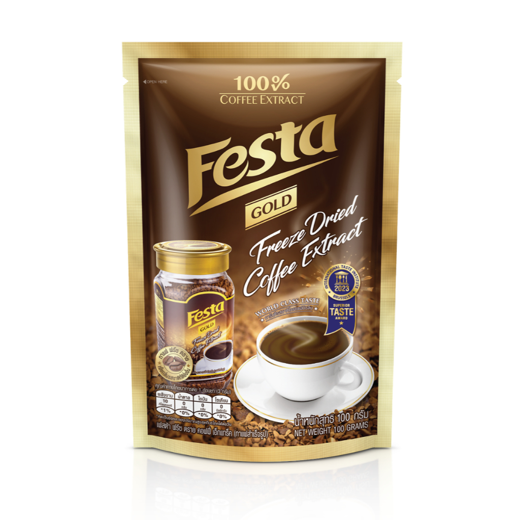 (ยกลัง 12 ถุง)FESTA FREEZE DRIED COFFEE EXTRACT - กาแฟเฟสต้า ฟรีซ ดราย อาราบิก้าและโรบัสต้ กาแฟดำ คั่วบด 100กรัมx12ถุง