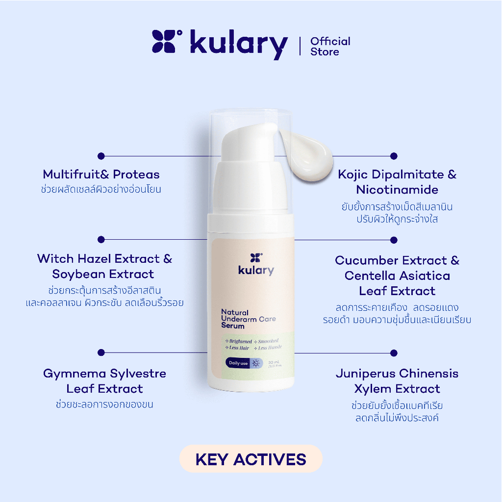 เซรั่มใต้วงแขน kulary natural underarm care serum ลดกลิ่นลดขนเรียบเนียนไม่ทิ้งคราบ30 มล.เซรั่มรักแร้