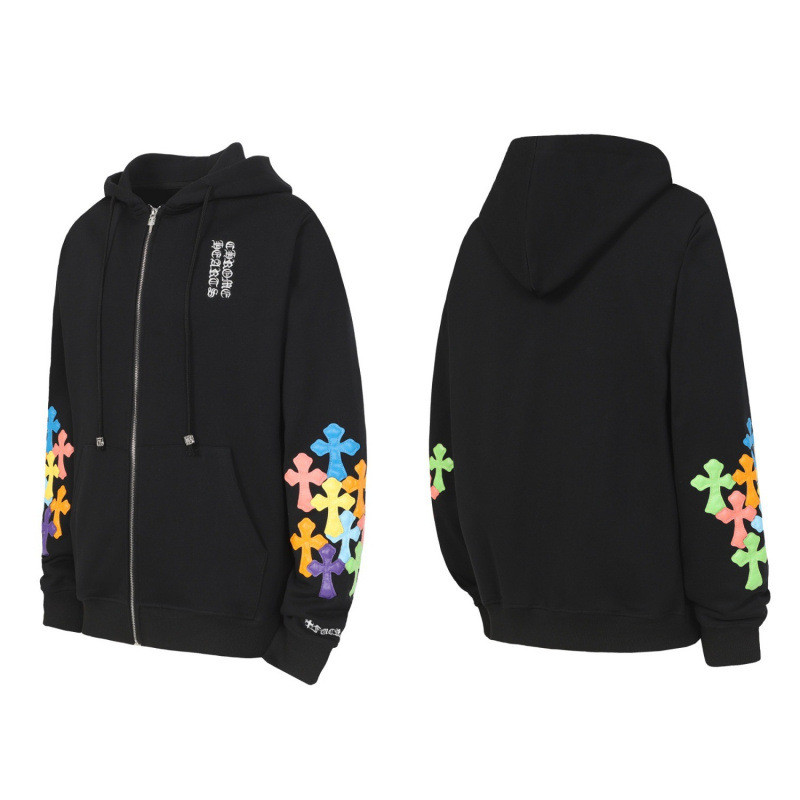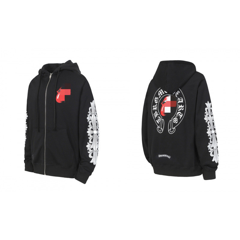 Chrome Hearts New Large Tongue Sanskrit Flower Arm Zipper Hooded Sweatshirt