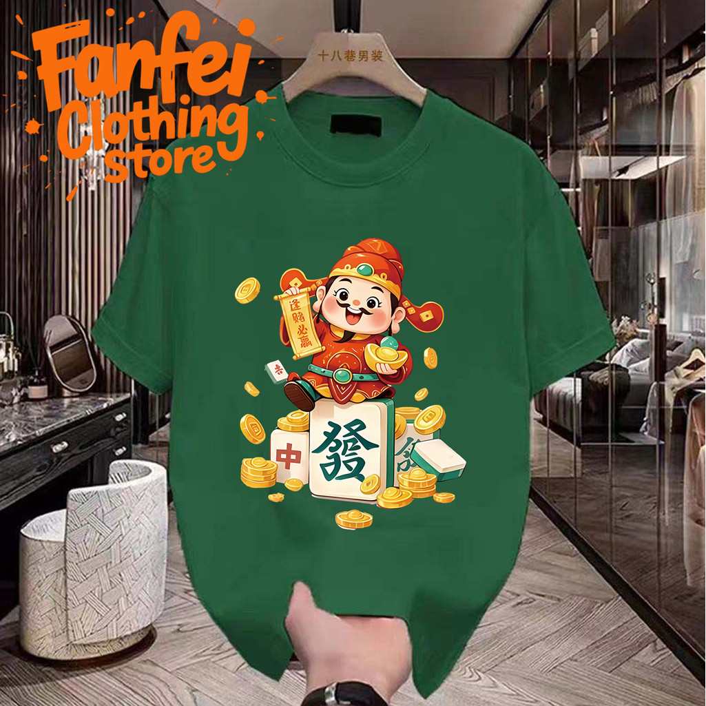 จัดส่งตลอด 24 ชั่วโมง Fanfei เสื้อยืดลายเทพเจ้าโชคลาภจีน นำโชค เสริมดวง การเงินการงานรุ่งเรือง