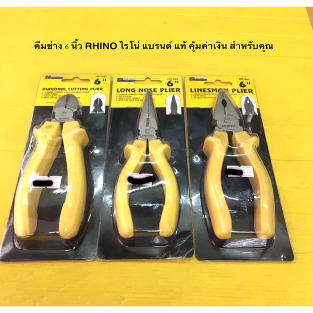 คีมช่าง 6 นิ้ว RHINO ไรโน่ คีมปากเฉียง คีมปากแหลม คีมปากจิ้งจก ด้ามเหลือง แท้ คีมช่างคุณภาพ คุ้มค่าเงิน สำหรับ You